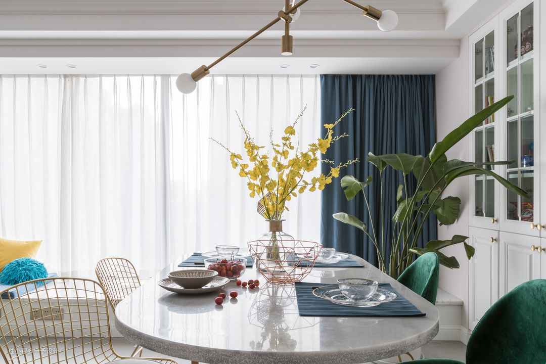▲和餐厅一致风格的分子灯、衣柜,主卧的装饰搭配一脉相承。但也露出不同,床头柜、装饰画、台灯表达了业主私密空间的个性化。