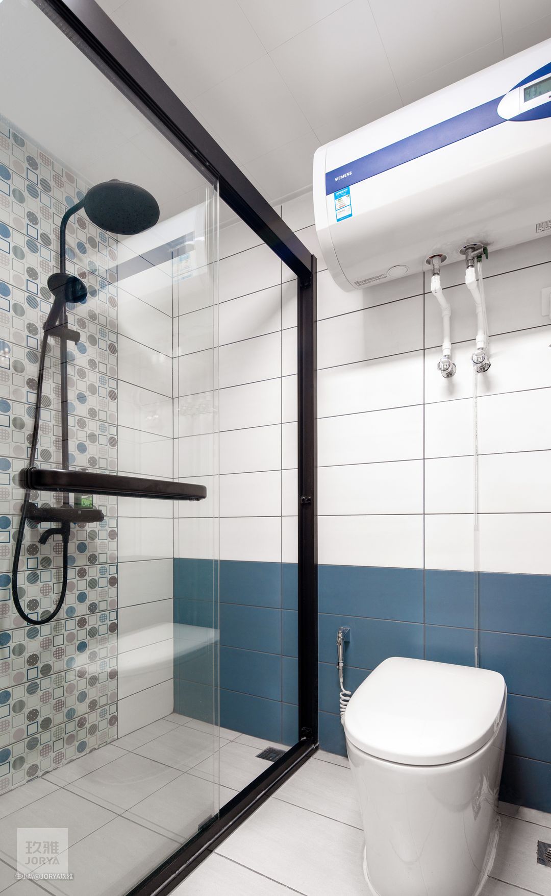 用黑框玻璃隔断隔开干湿区。