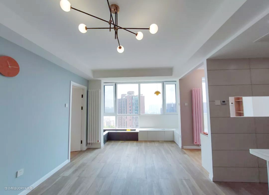 房子最大的优点是全屋都是轻体墙,改造的空间非常大;另外一个优点是有一整面落地窗,采光超棒。