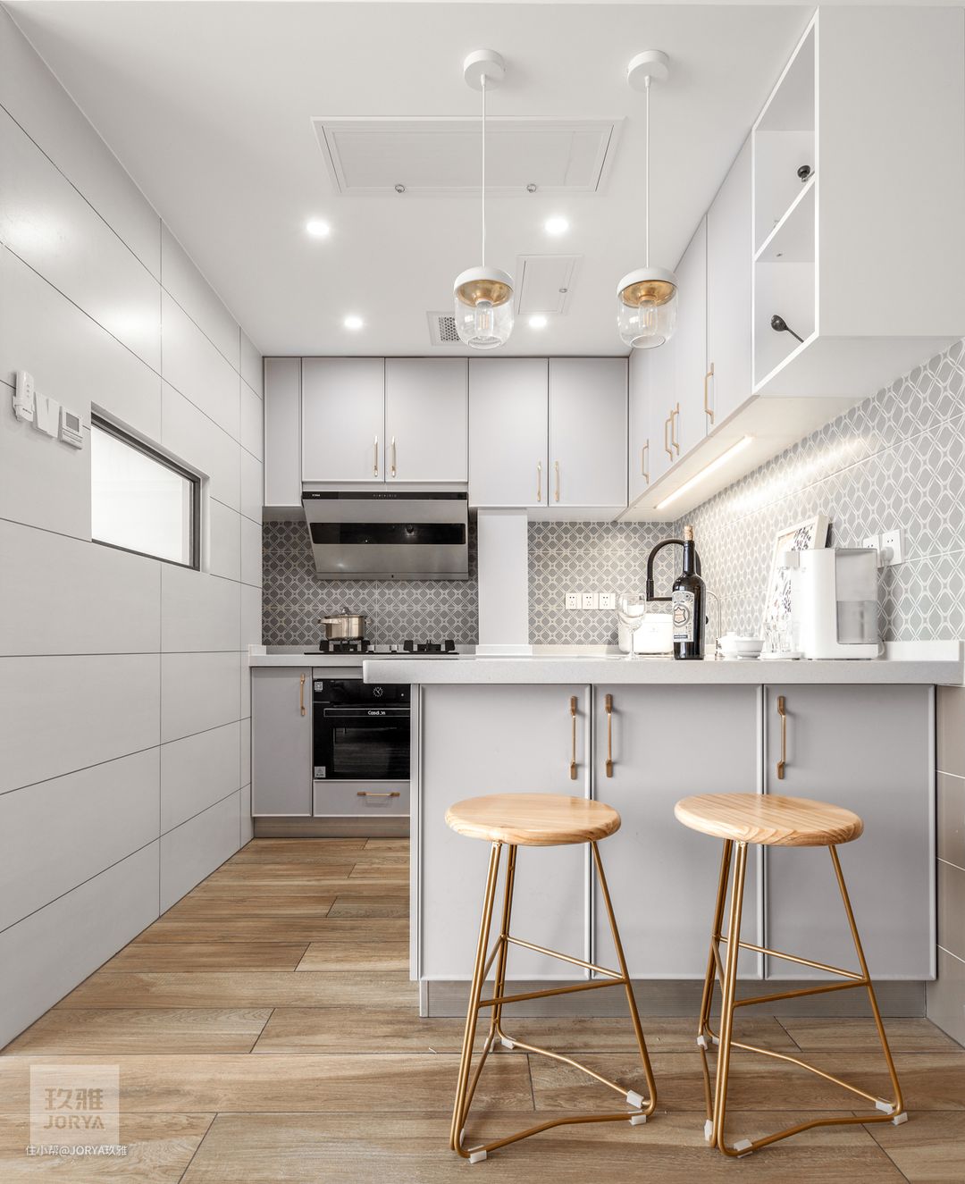 U型厨房,利用率最高,一家三口平时吃饭就在吧台上解决了。