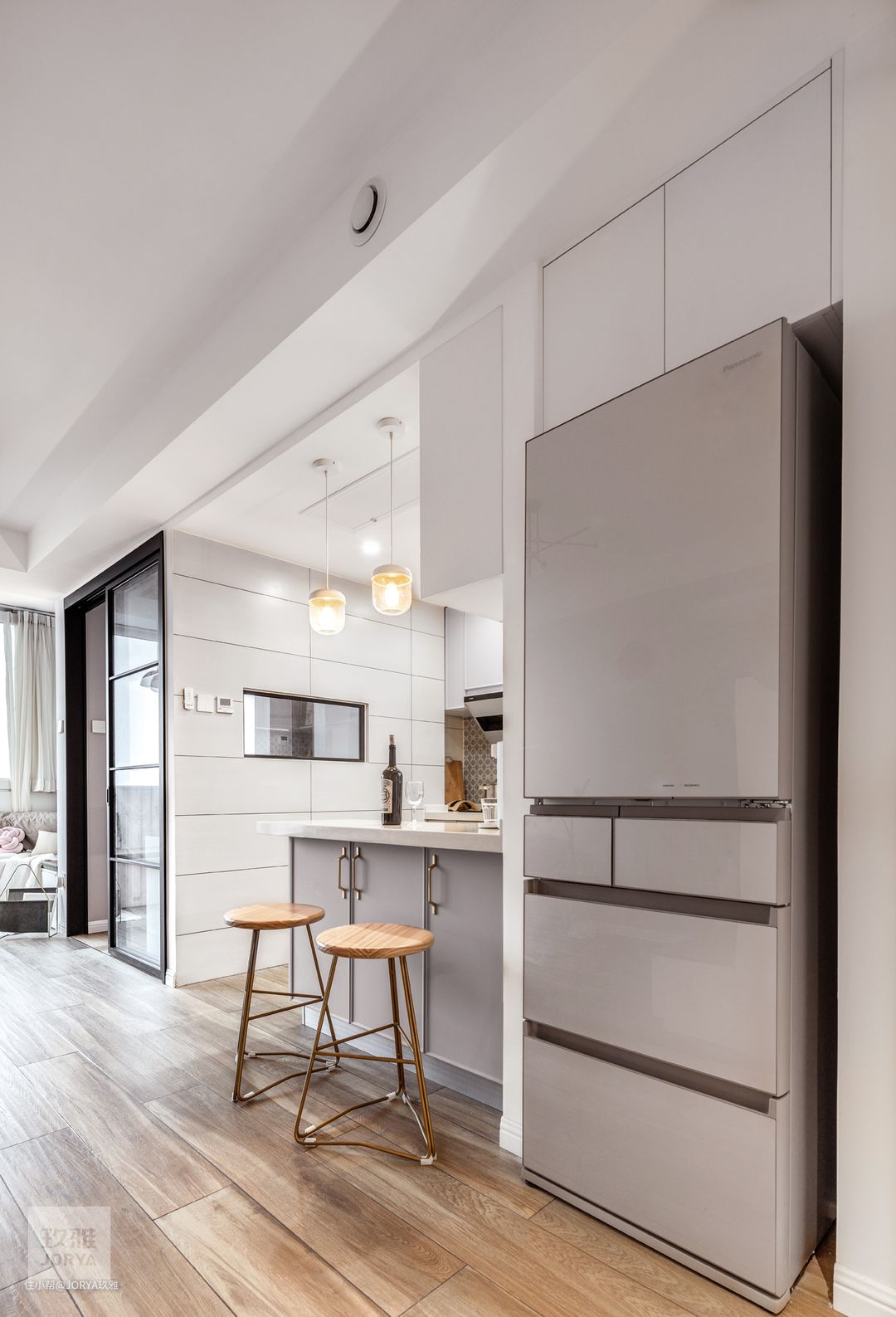 最外面的两格开放吊柜是搭配吧台使用的。