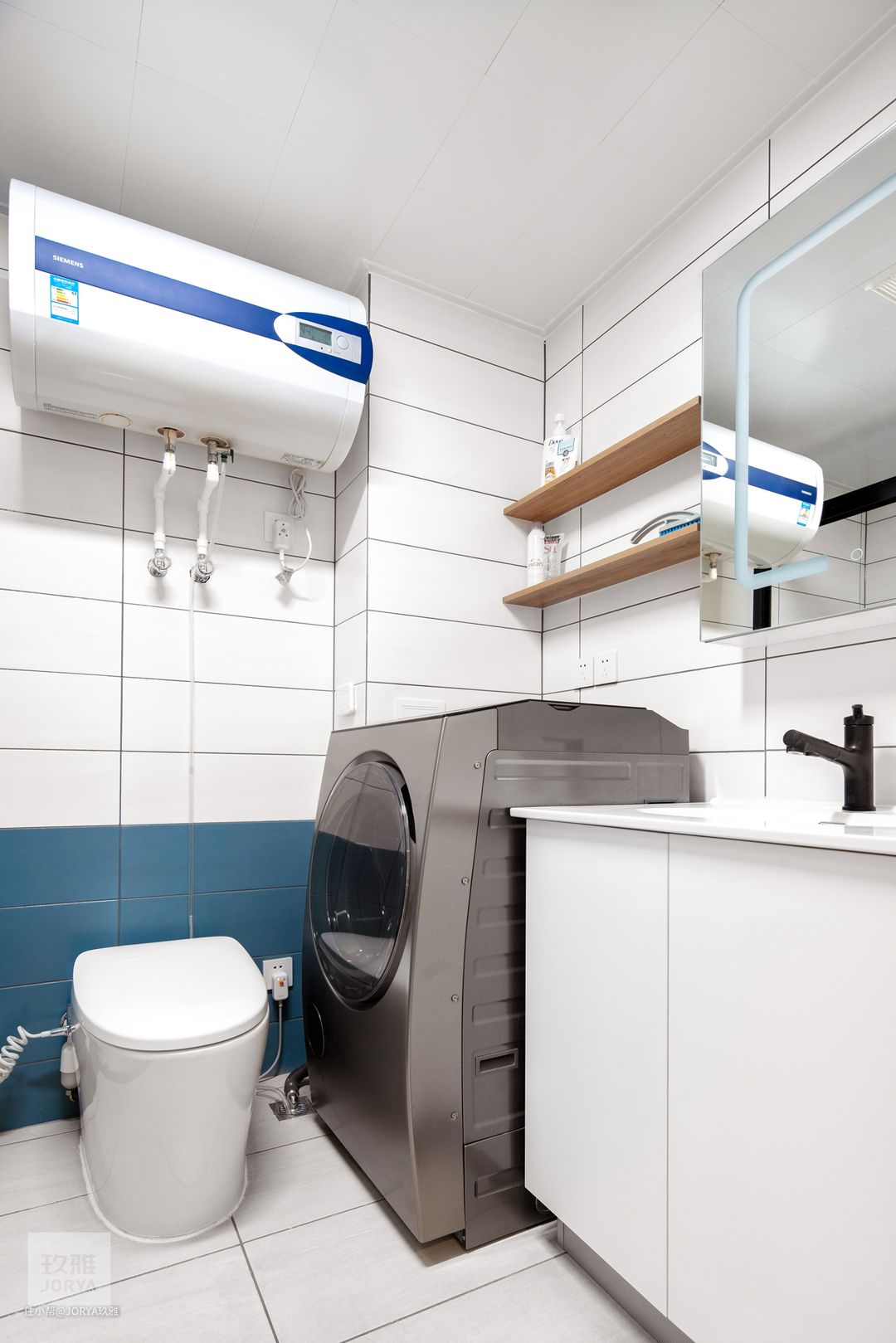 Littleswan比佛利/小天鹅联名合作洗衣机,卖点是烘干效果,听很多业主提到过这款洗衣机的烘干效果,但是体积太大了,为了把这个大家伙放在家中,设计过程中设计师专门跑到线下专卖店去量的精确尺寸:745*600*1065。