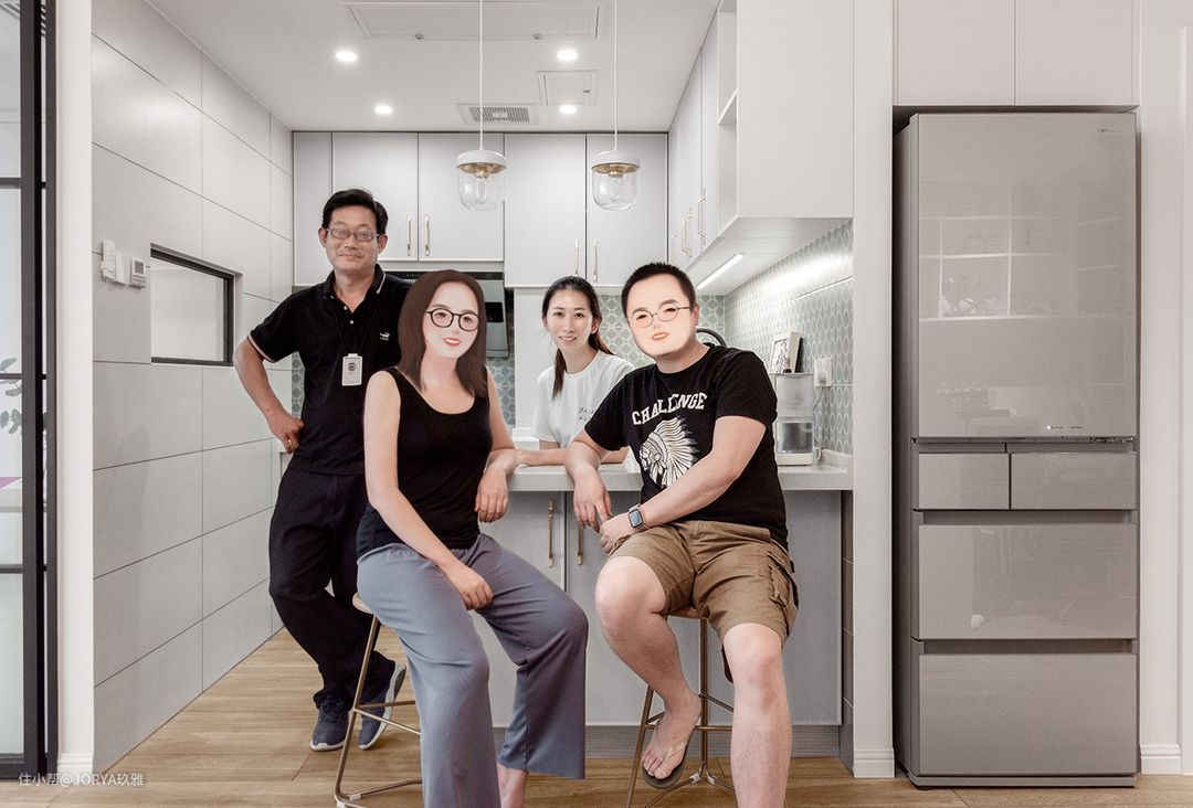 从左到右依次是周工长、业主、甘棠设计师、业主。