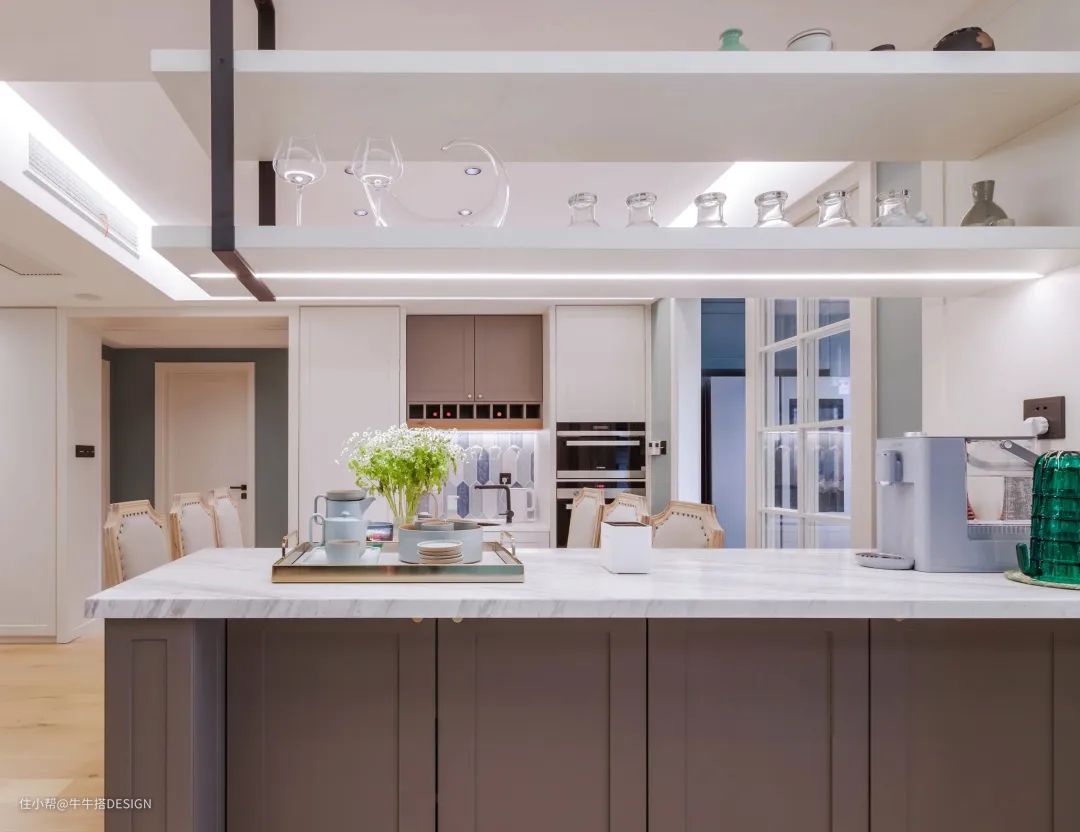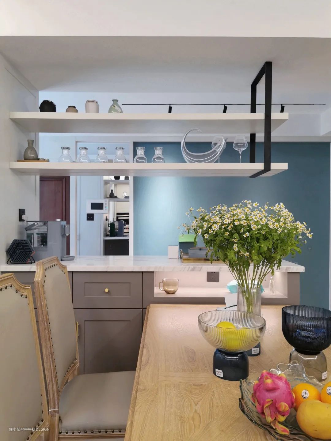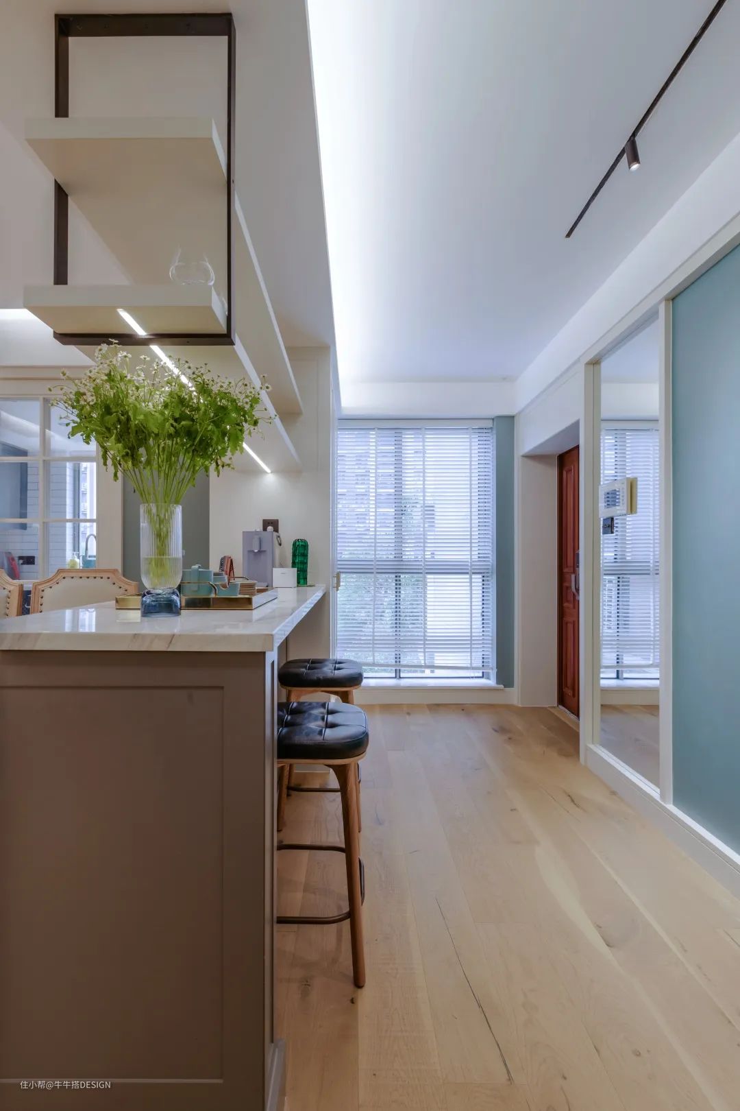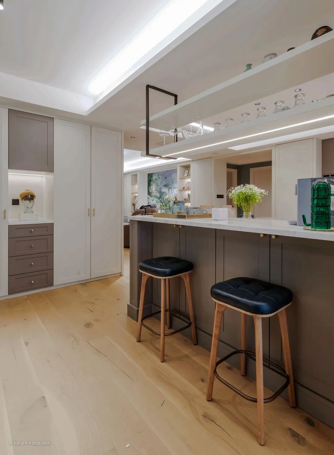 以这一张作为整篇的完结吧,走廊的吧台作为一家入户和起居的枢纽,让生活的静谧融入自然恬淡。女主人对生活的品味,在各个细节中把爱释放,让每个住家的人都带上美丽笑容。生活是眼前的幸福,没有浮尘的叨扰,更是爱表达。
