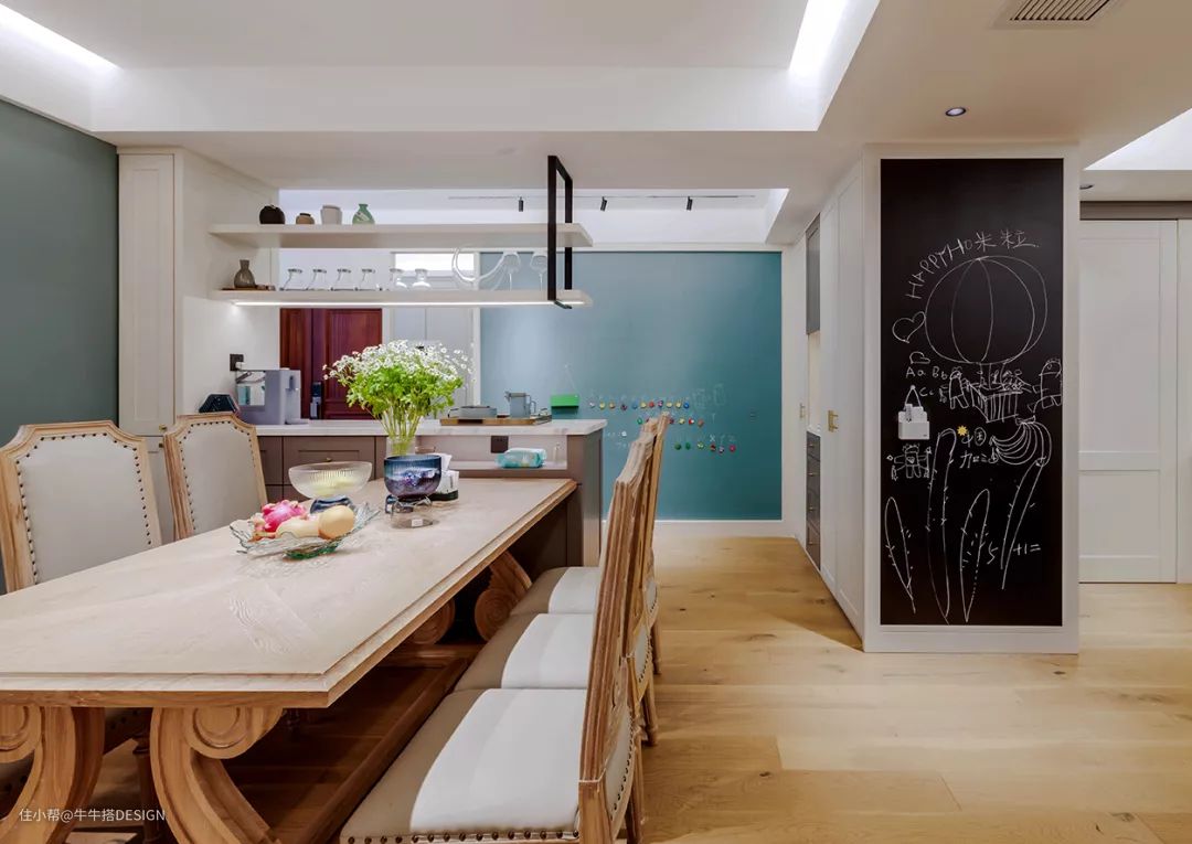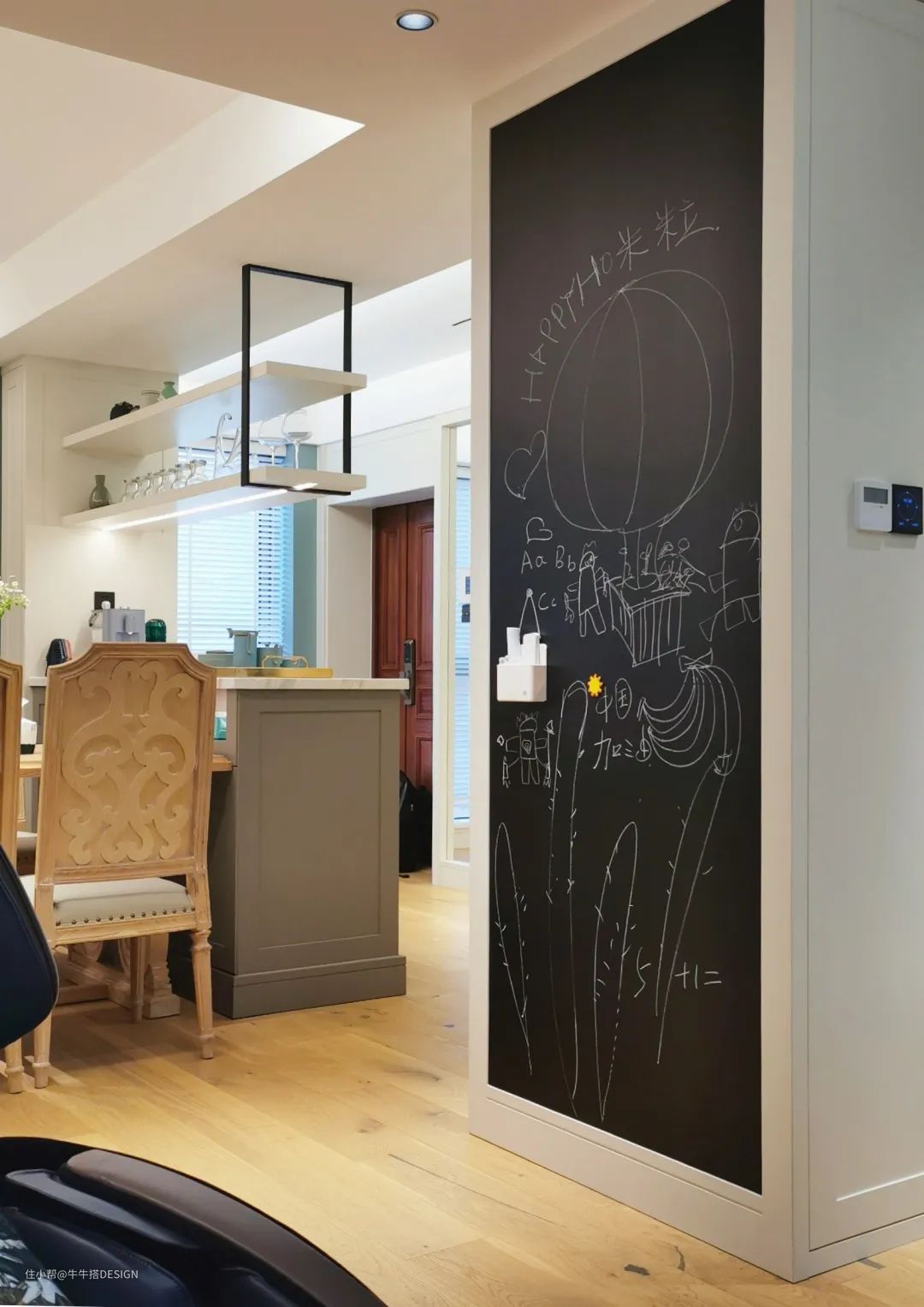 客厅和餐厅的用黑板过度,记录的涂鸦点滴随时都让你有生活的小小感动。