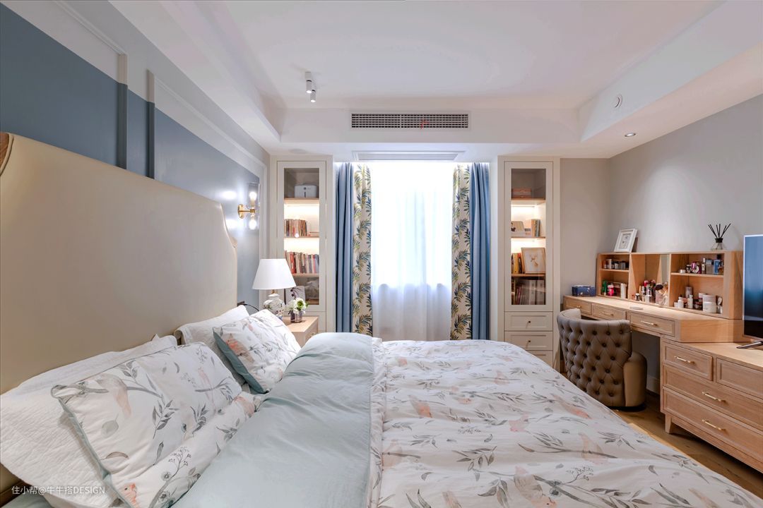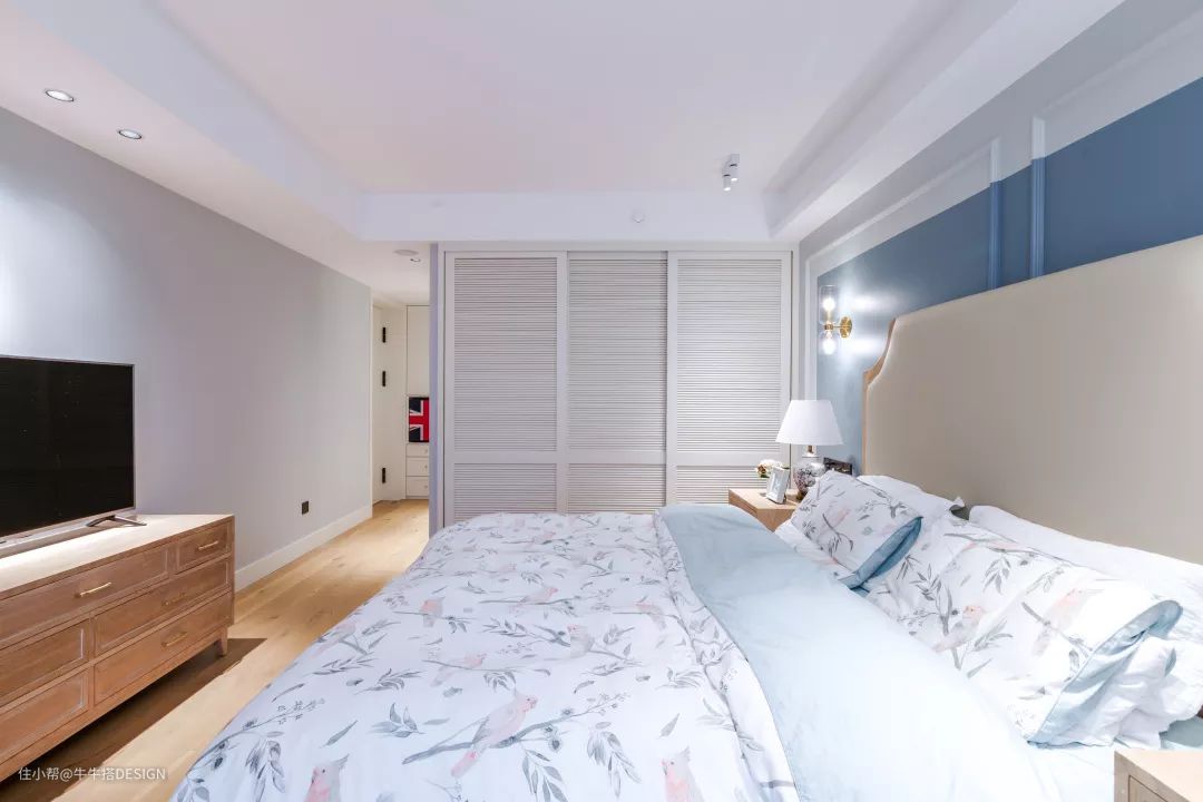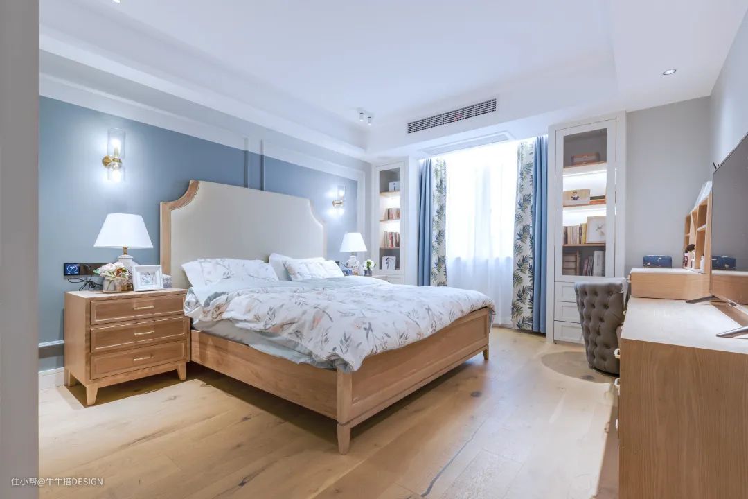 主卧主基调蓝色结合自然元素素,以实木结合配饰丛林元素,田园气氛让休息室更加安静怡人。