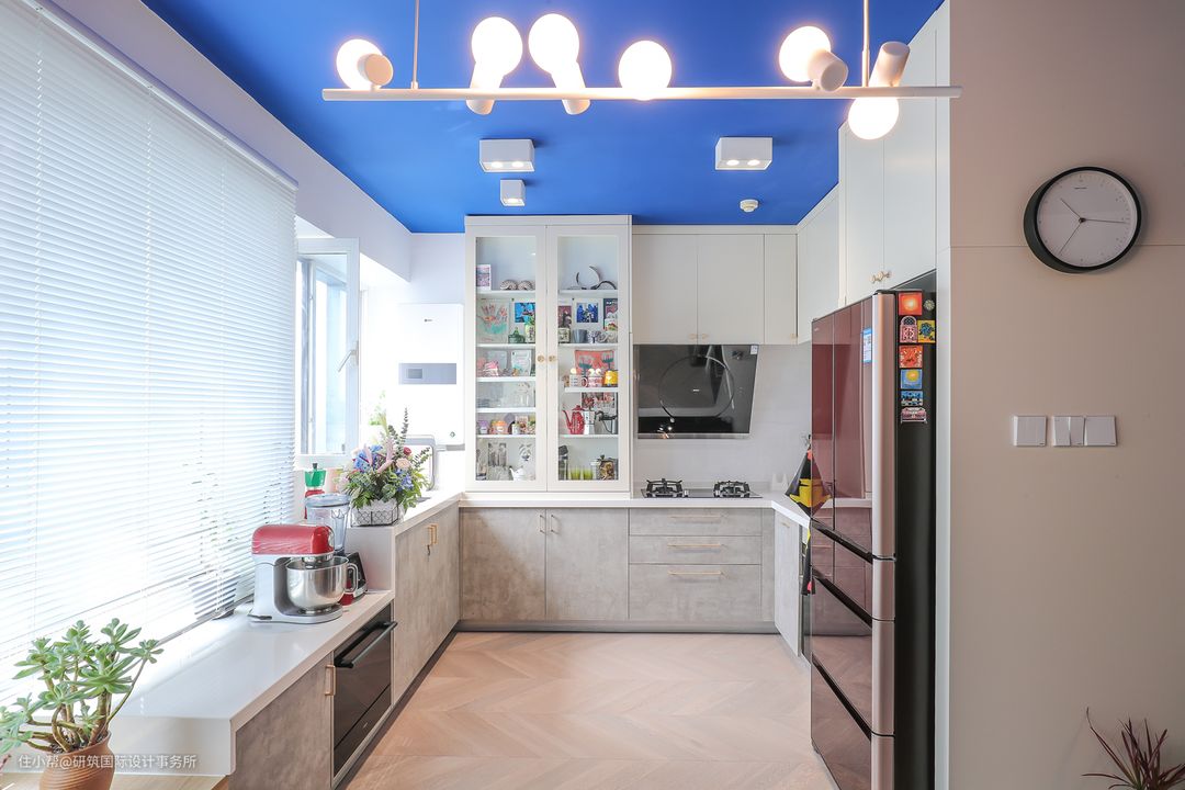 摒弃掉传统厨房的封闭空间,设计为开放式格局,视觉直观上增大面积,U字型厨房,满足内嵌式家电的需求,下厨动线流畅,开间2米,活动自由。#厨房#橱柜