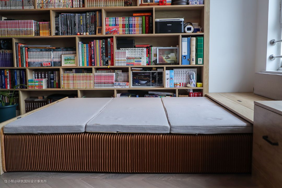 隐形床拉出之后,2m的长度,完全解决临时居住的需求,收缩回去后单看就是飘窗,完全隐蔽,且美观。#折叠床