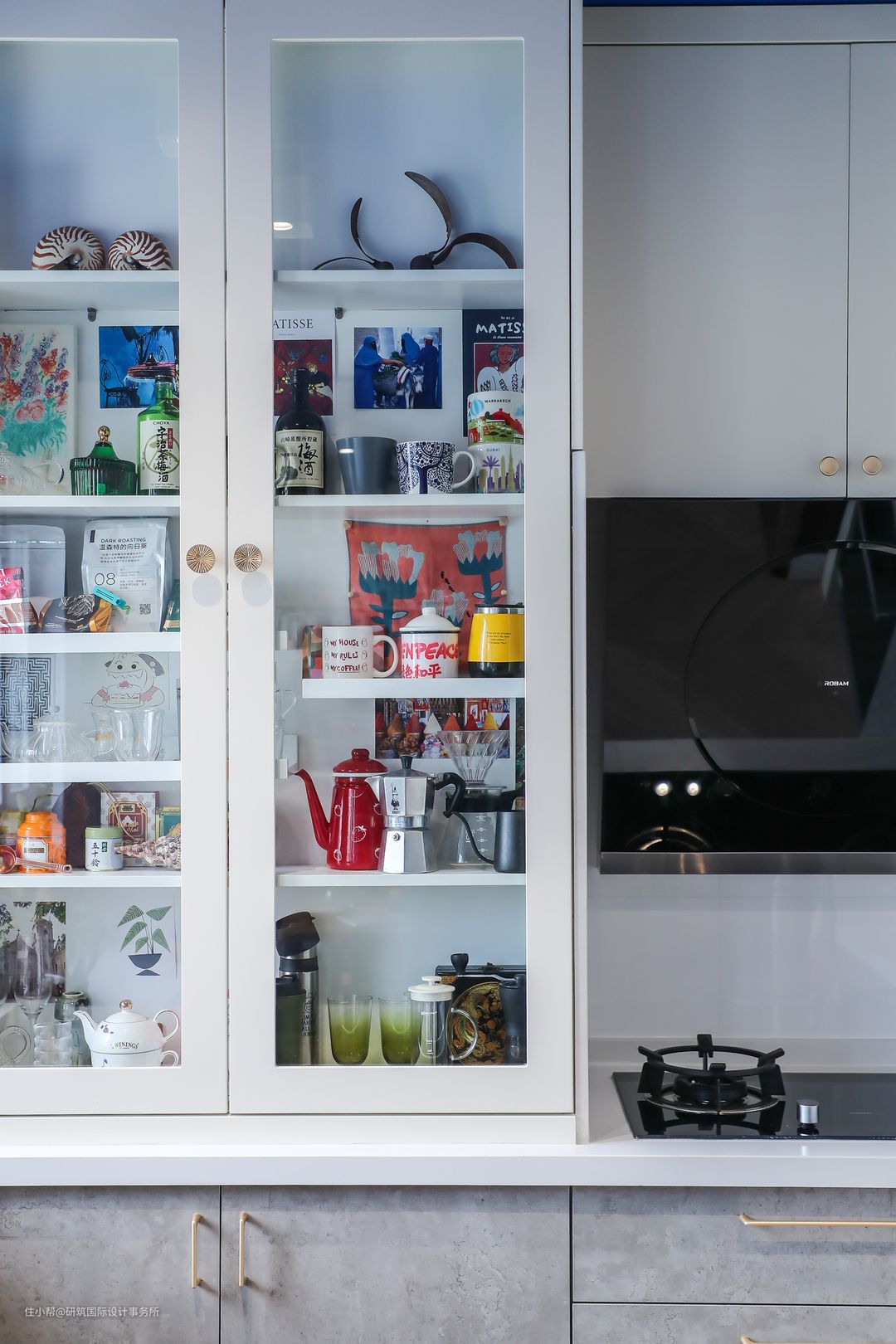 金色的复古把手,搭配烟灰色橱柜,精致高级。#橱柜#把手