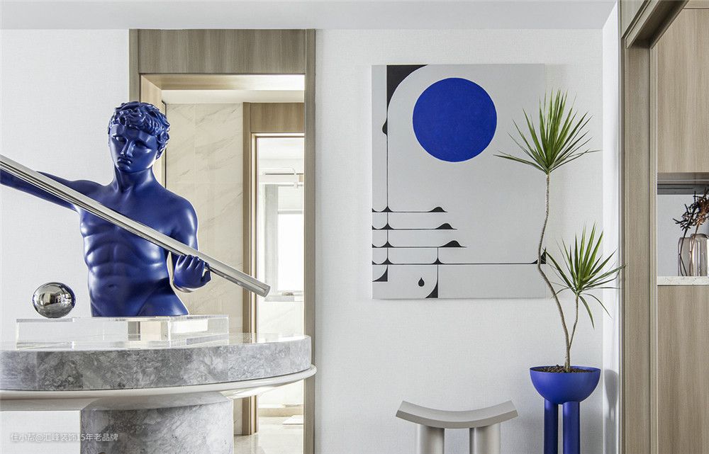 本案为汇峰装饰公司项目,项目地位于广州市番禺区,此外,近些年番禺区的高速发展为其创造了良好的交通条件、完善的基础设施建设,坐拥城市优质的地理资源的同时也集合了人文艺术氛围。设计以“一首理想诗”为题,以艺术视角为出发点,将现代广州的城市肌理感融入住宅空间的设计中,借蓝色深沉来抒写生活的理想诗篇,满足我们对悠然自得的生活的向往和追求。