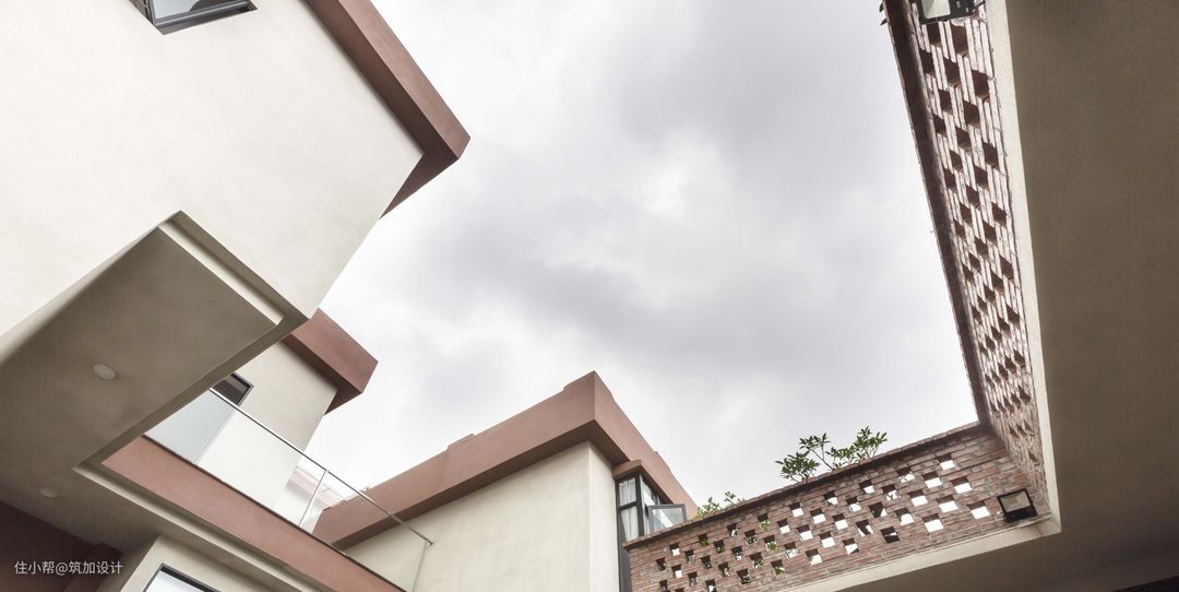 红色部分是外墙,外墙漆大面积是灰白色真石漆,用了一些跳色,业主在建筑外观修缮方面并不想投入太多的预算,如果有更多的预算空间的话,完全按照我们原来的外观设计做会做的很有意思。