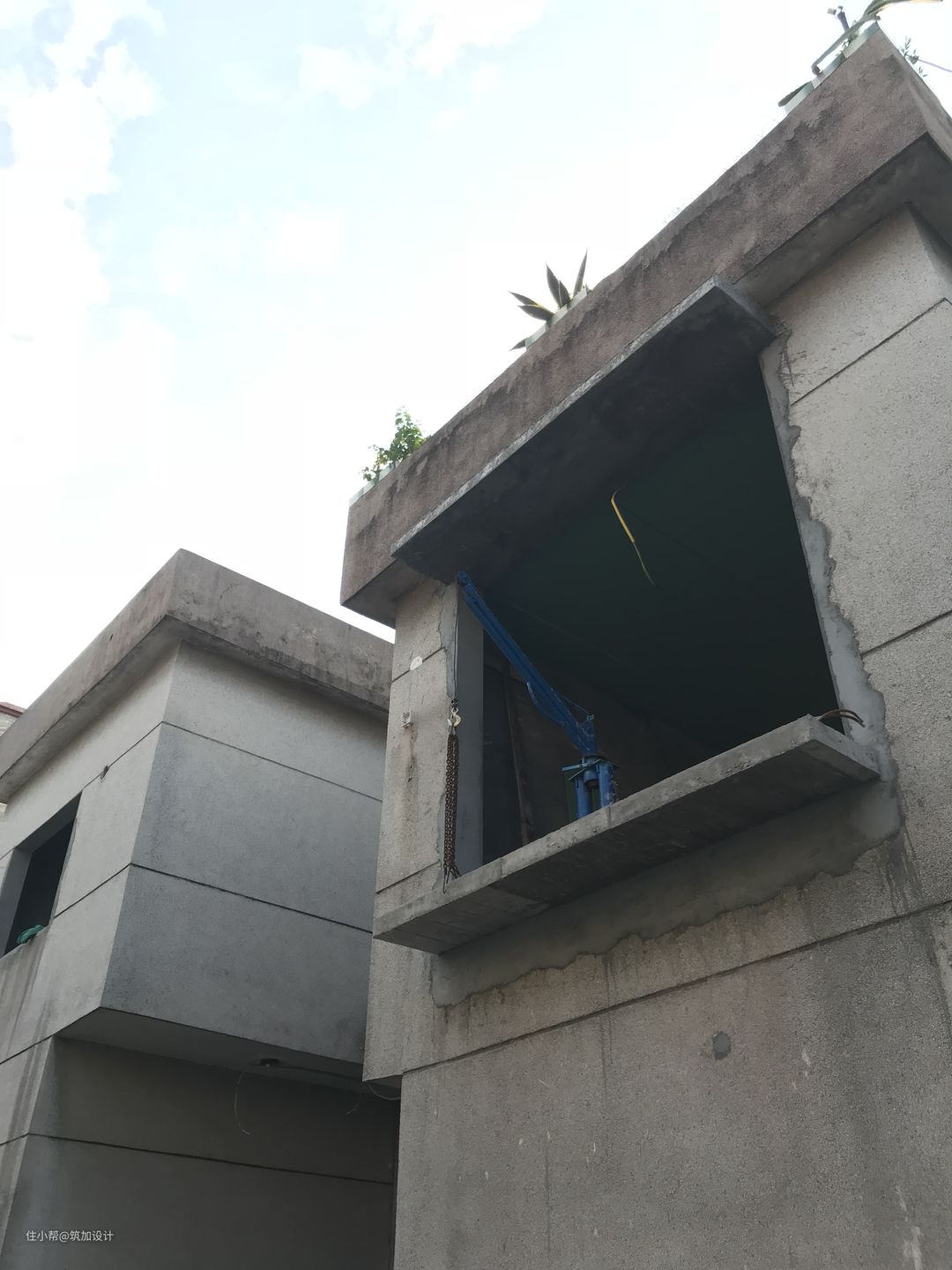 红色部分是外墙,外墙漆大面积是灰白色真石漆,用了一些跳色,业主在建筑外观修缮方面并不想投入太多的预算,如果有更多的预算空间的话,完全按照我们原来的外观设计做会做的很有意思。