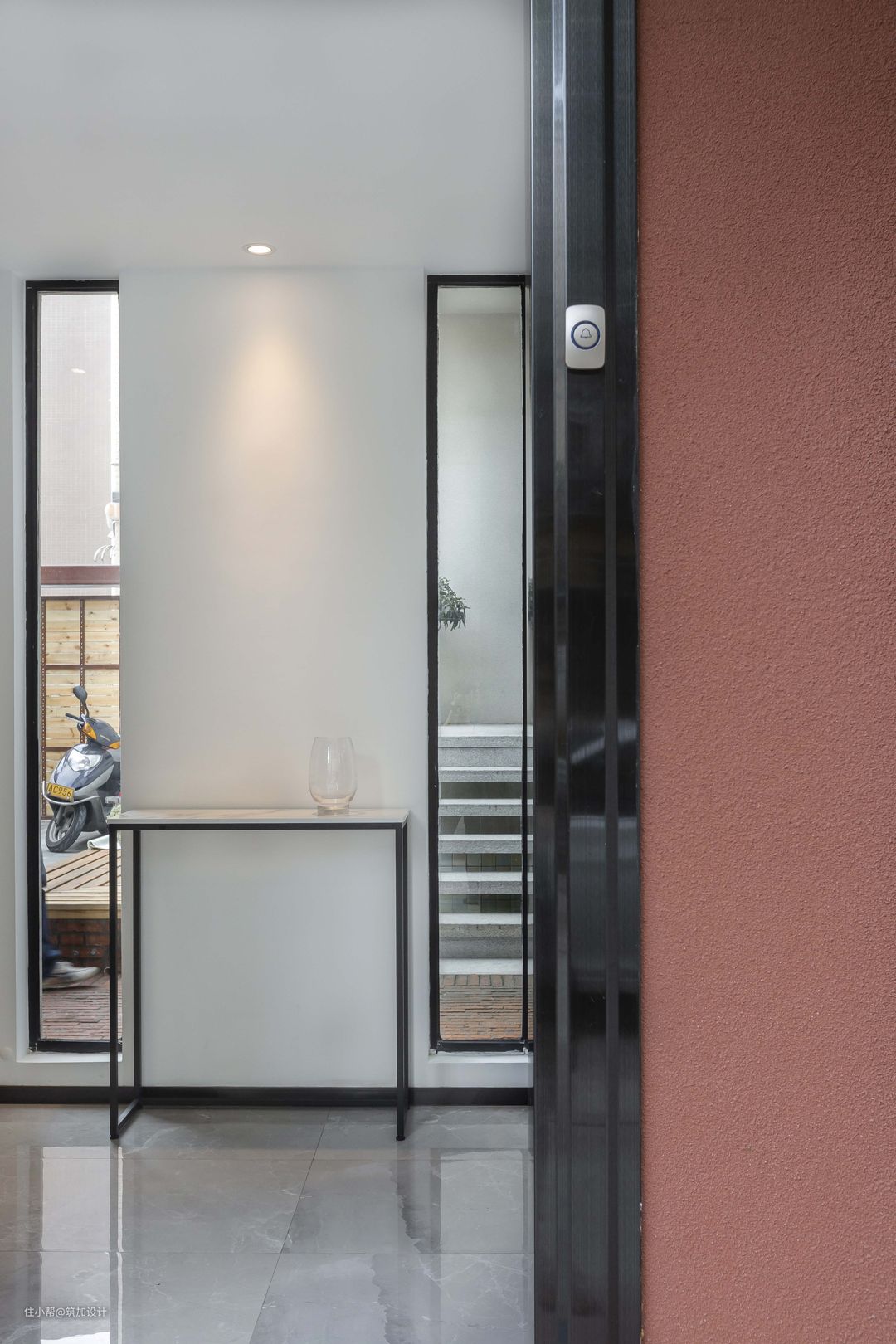 大门虽然也是隐形门,但是门锁还是暴露了它的面目,因为大门使用频率比较高,所以在实用与美观之间,我们选择了前者