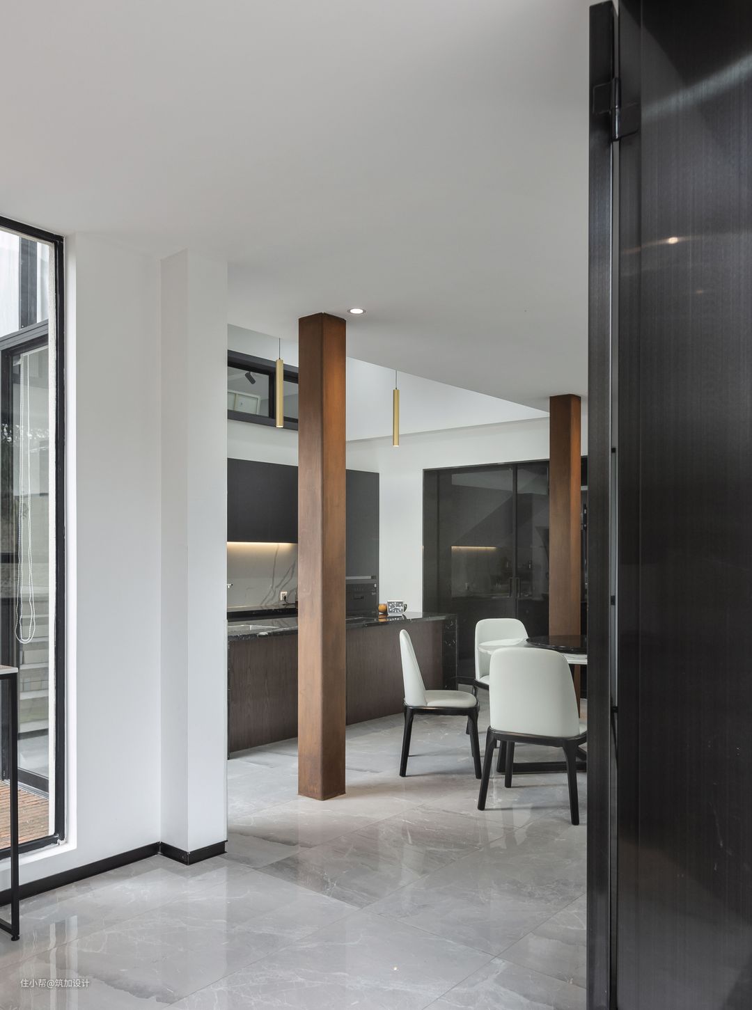 项目地点:佛山顺德容桂 项目性质:室内设计,建筑修缮,庭院改造 项目设计:筑加团队 绘图:谢曾权 主要材质:黑白根大理石,岩板,铁锈漆,瓷砖,木饰面,烤漆板 设计说明: 顺德——一个有着浓厚生活气息的城市 在这个很老的岭南风格的村子里 1990年,房子的屋主用尺子和铅笔绘制了平面图,开始自己动手 石米外墙皮、水磨石地面见证着这家人的成长 随着时间的推移 2018年,我们团队到现场量尺,开始着手改造这个老房子 家庭成员的变化与成长,原有的格局已经不适用于当前 我们将居住空间重新去定义和塑造 加入西厨,在原有的院子里从新建造了一个多功能工作室 运用更多符合当代生活格调的材料,大理石、岩板、铁锈漆、深灰色烤漆板 老人们可以看到这个他们亲手盖的房子焕发新的生命。