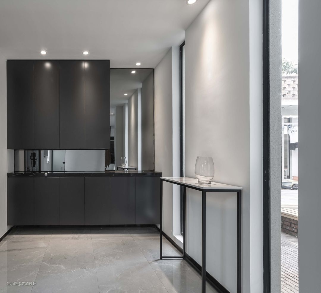 工厂定制的深灰色鞋柜,烤漆门板,厂家定制的柜子很重要的一点就是,要注意他们用的顶封板与侧封板的尺寸,很多柜子安装上后很土很难看是因为他们把顶封板与侧封板做的太宽了,我们审核厂家出的图纸,都会要求他们原来10公分的顶封板只能露出2公分,同时再内凹2公分,这样才能体现出极简的现代感,就如同现在流行的窄边框金属门一样,柜子的边框一样也需要极窄。