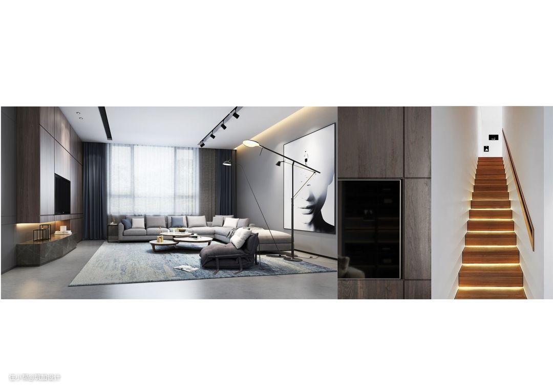 楼梯是素水泥楼梯,工业风的元素用的非常克制,只有两个铁锈漆柱子与素水泥楼梯,因为毕竟是家装,舒适度才是第一重要的