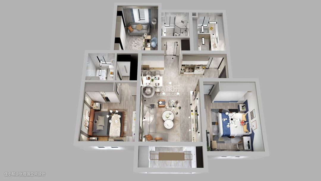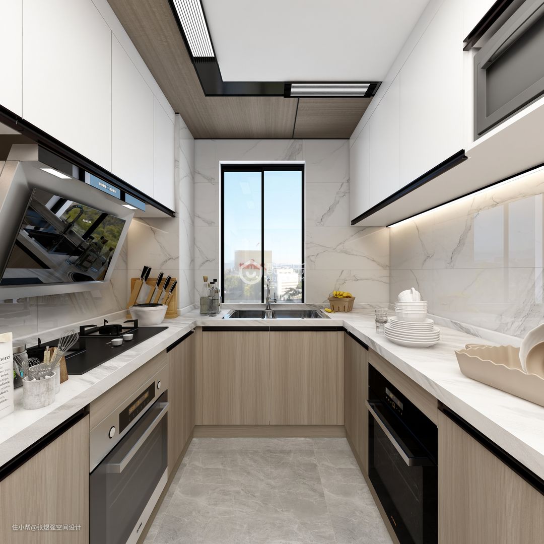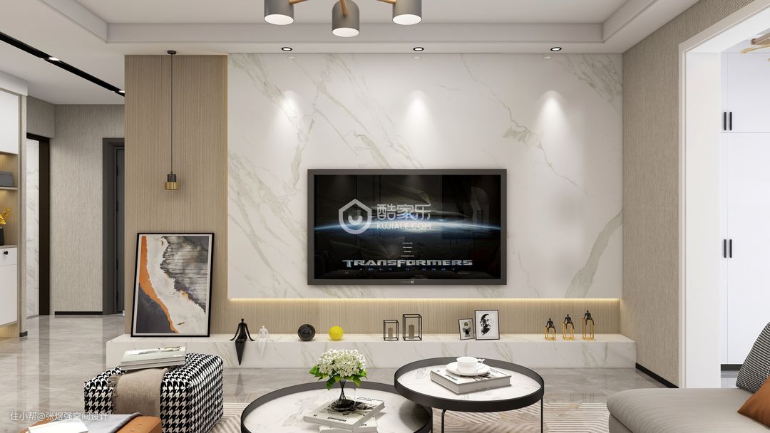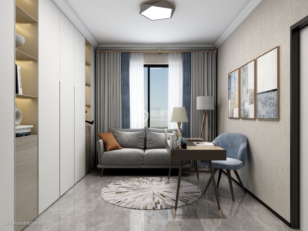 本案在一层,业主三口之家常住,所以户型局部调整,取消一个洗手间,洗手间也压缩了面积,增加了储物空间,餐厅稍微调整,增加了餐边柜和增大了餐厅面积,打通阳台,直通花园,整体以现代简约为主,作为地暖层高才2.65,简单吊顶,房间几乎没吊顶。背景墙稍微有点造型,由于采光一般,所以几乎以浅色为主,局部点缀亮色。