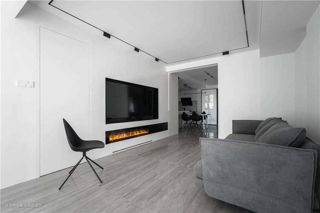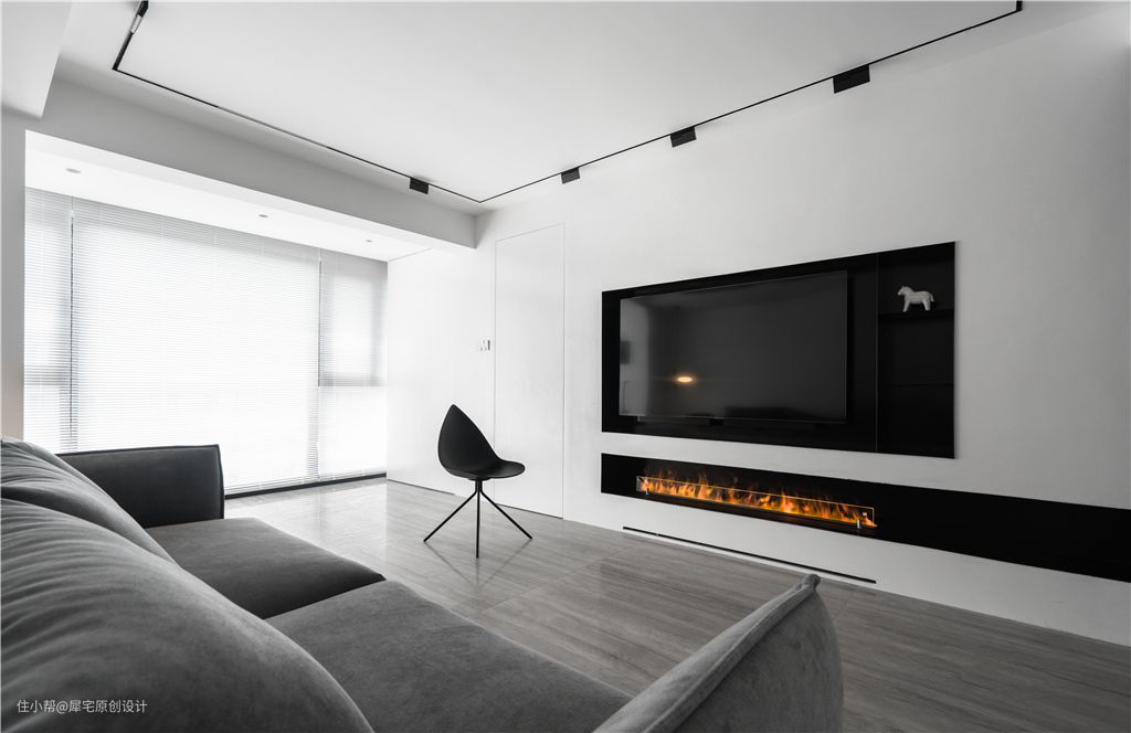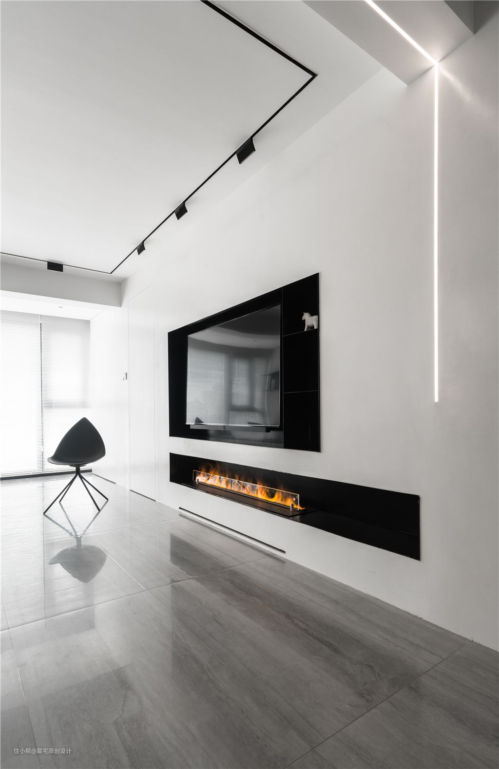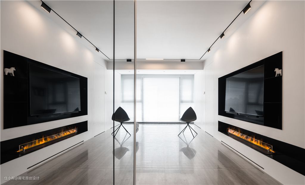 只有黑白的空间难免显得清冷,装饰壁炉的设计在冬季可以调节空间气氛。