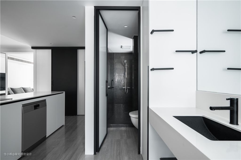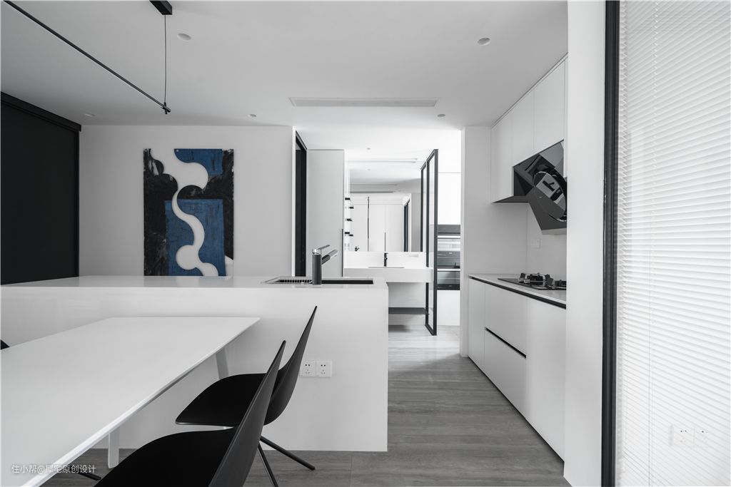 其实本案业主孙姐是原来的客户介绍的,他们是同事也是朋友。孙姐看了他们家的设计改造和风格觉得比较喜欢,之后也找到我们,对于黑白极简的风格定位是一开始就比较明确的。
