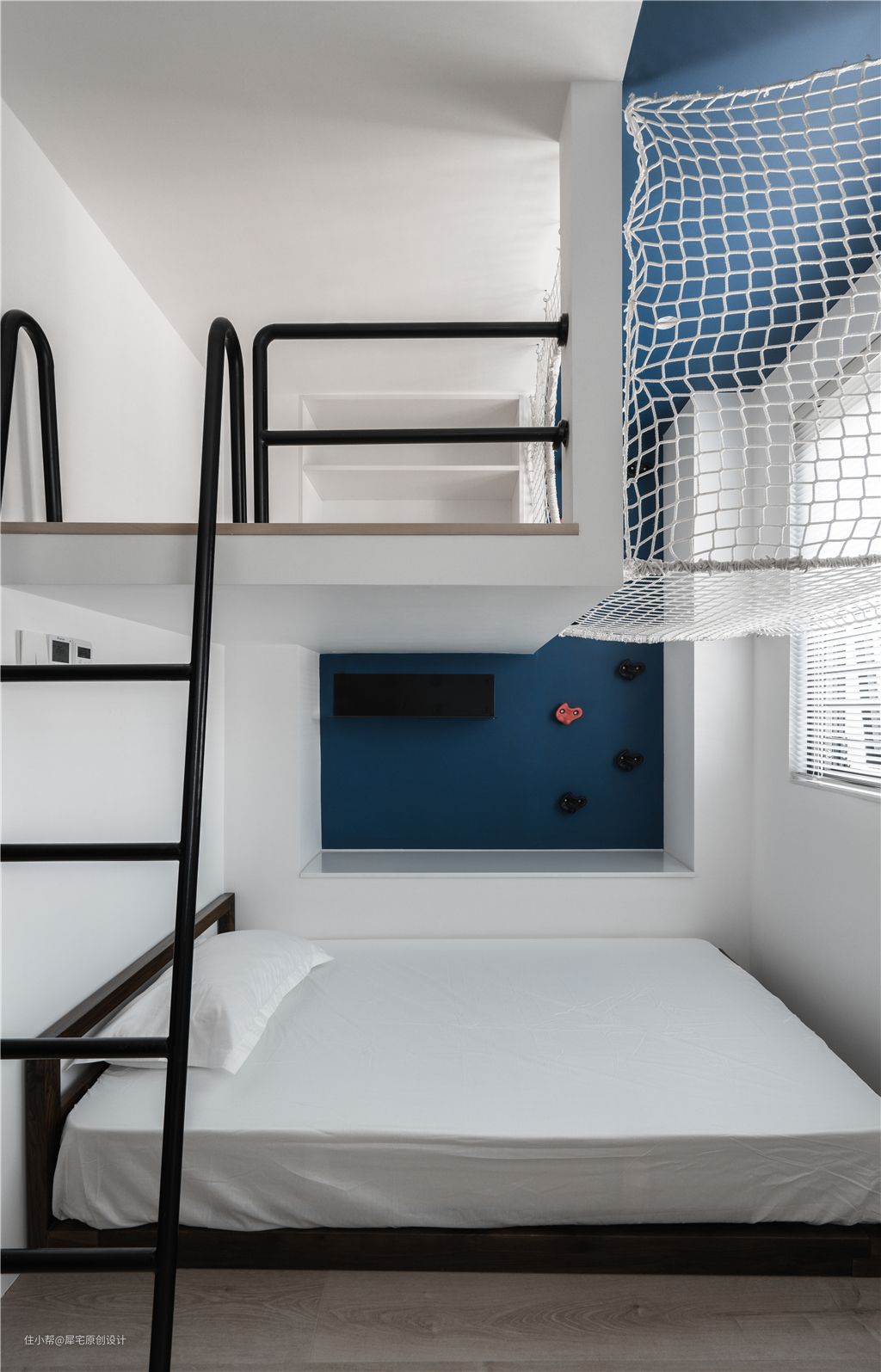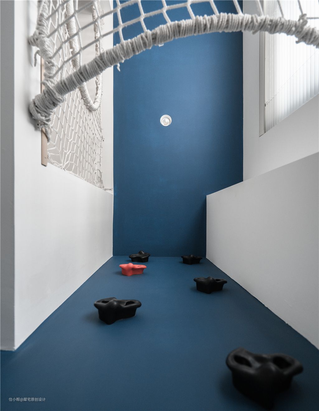 儿童房的改造是比较有意思的,分为两层空间,做了一面攀岩墙,兼具休息、学习和娱乐功能。