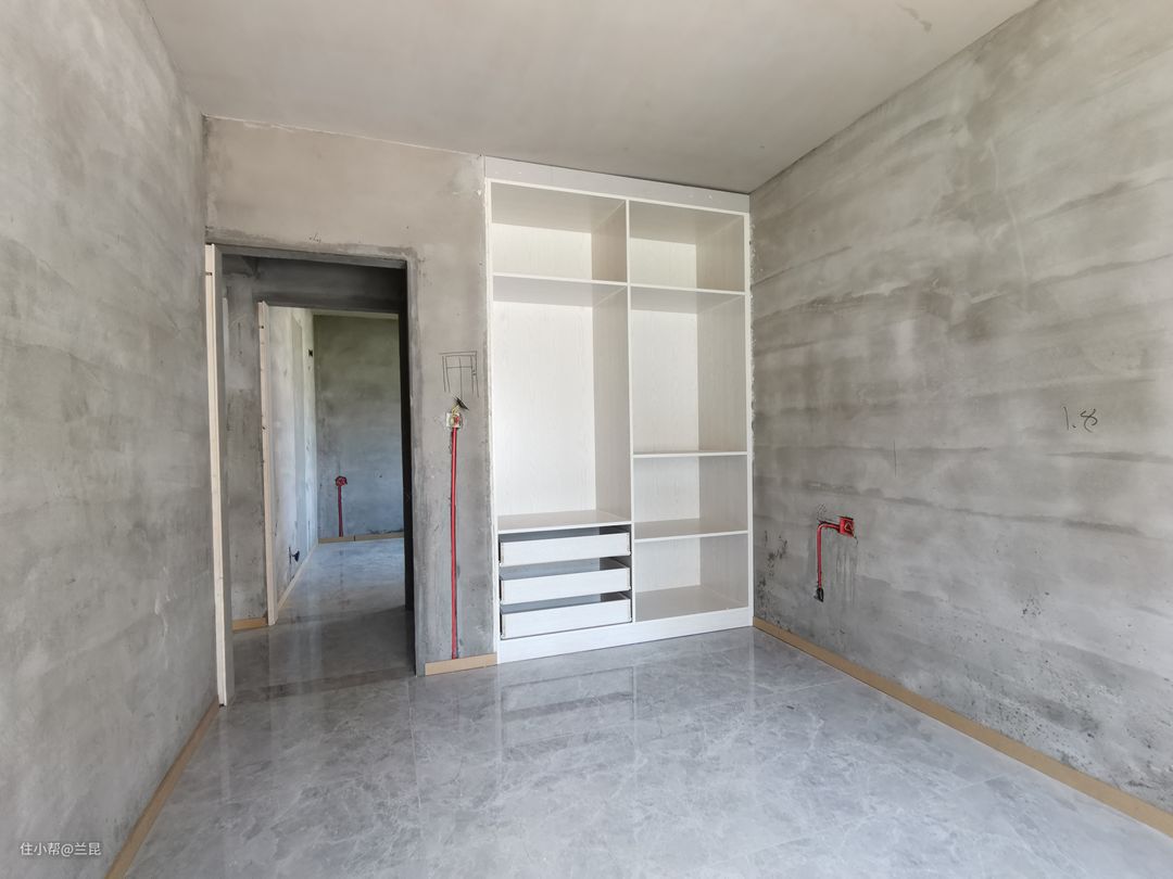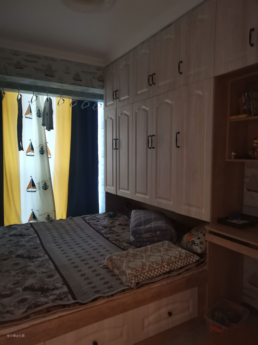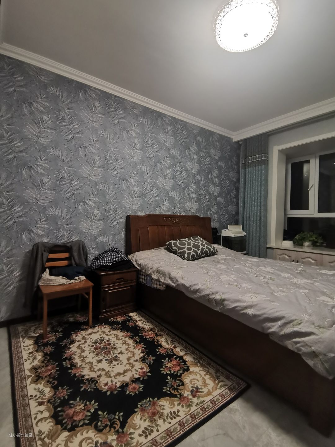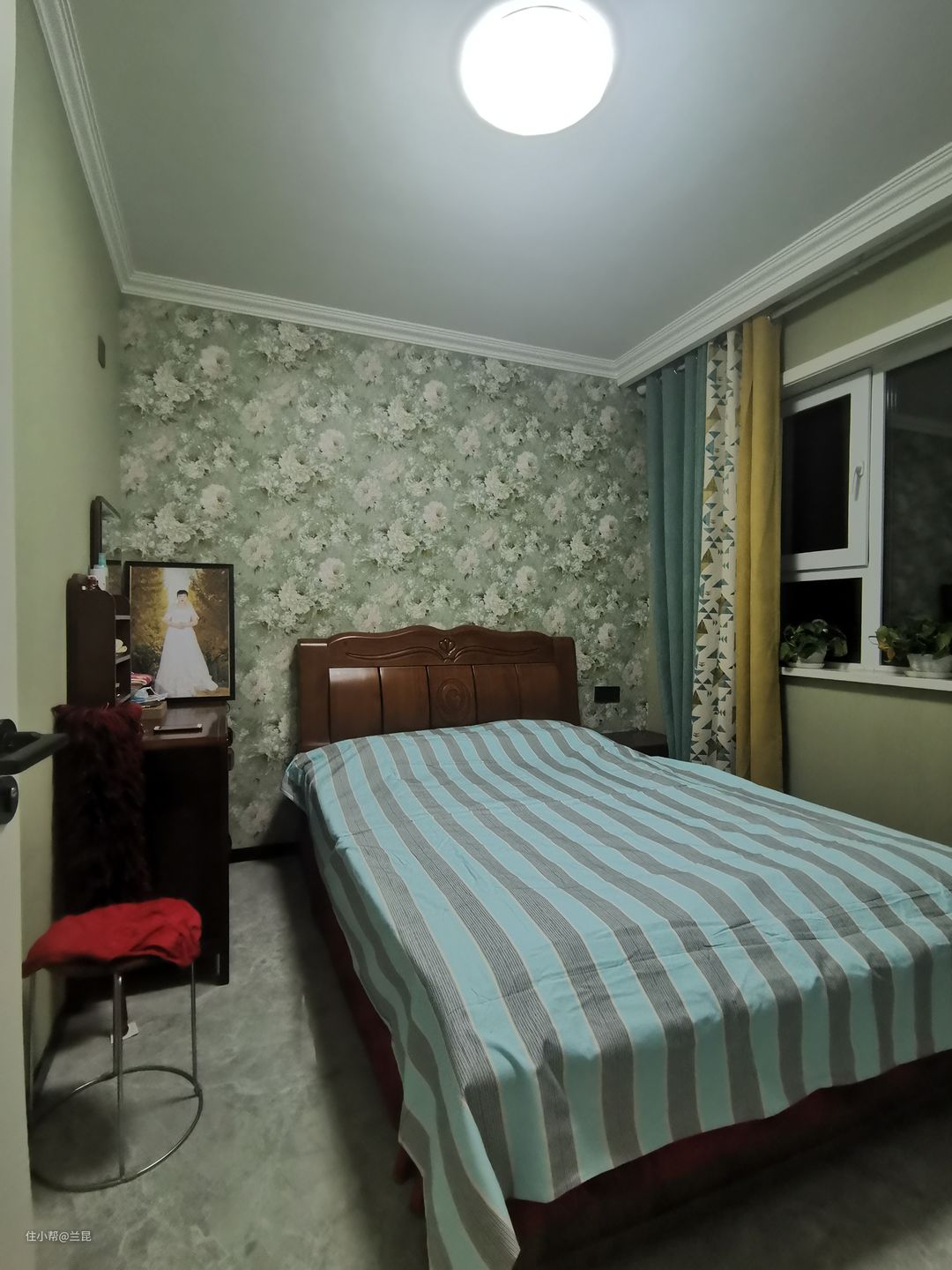 次卧也是简单处理的嵌入式衣柜、石膏线、窗帘盒。墙面壁纸采用的AB款搭配。