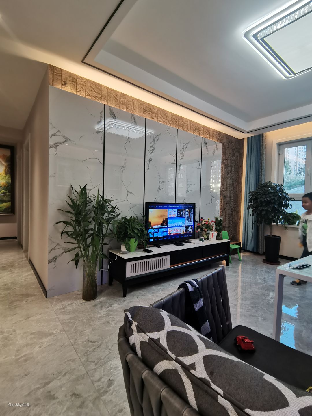 这是站在客厅的位置,可以看下吊顶,不锈钢条,电视背景墙等