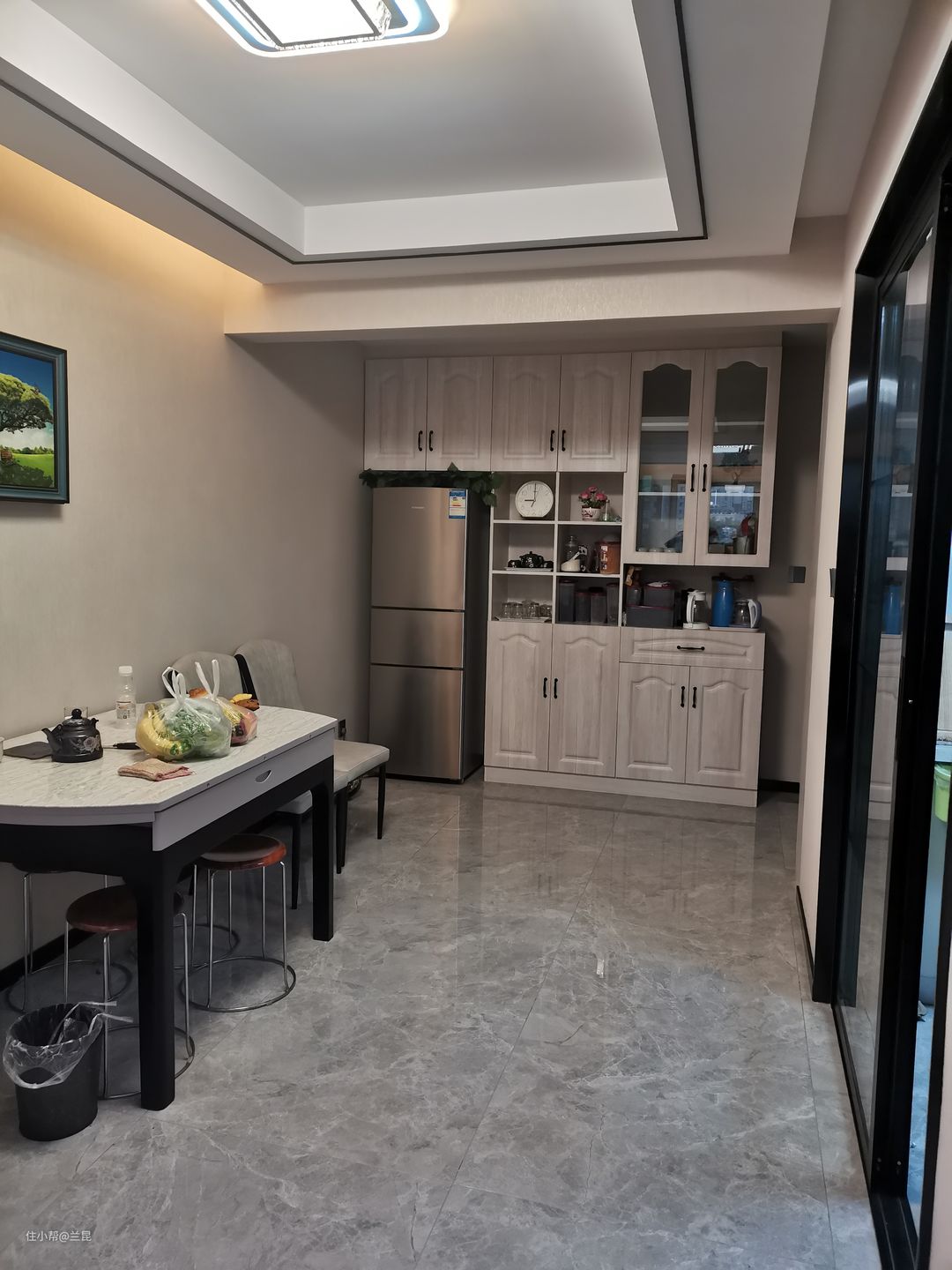 这部分增加了餐边柜及嵌入式冰箱,空间很好的利用起来。这是实景效果。