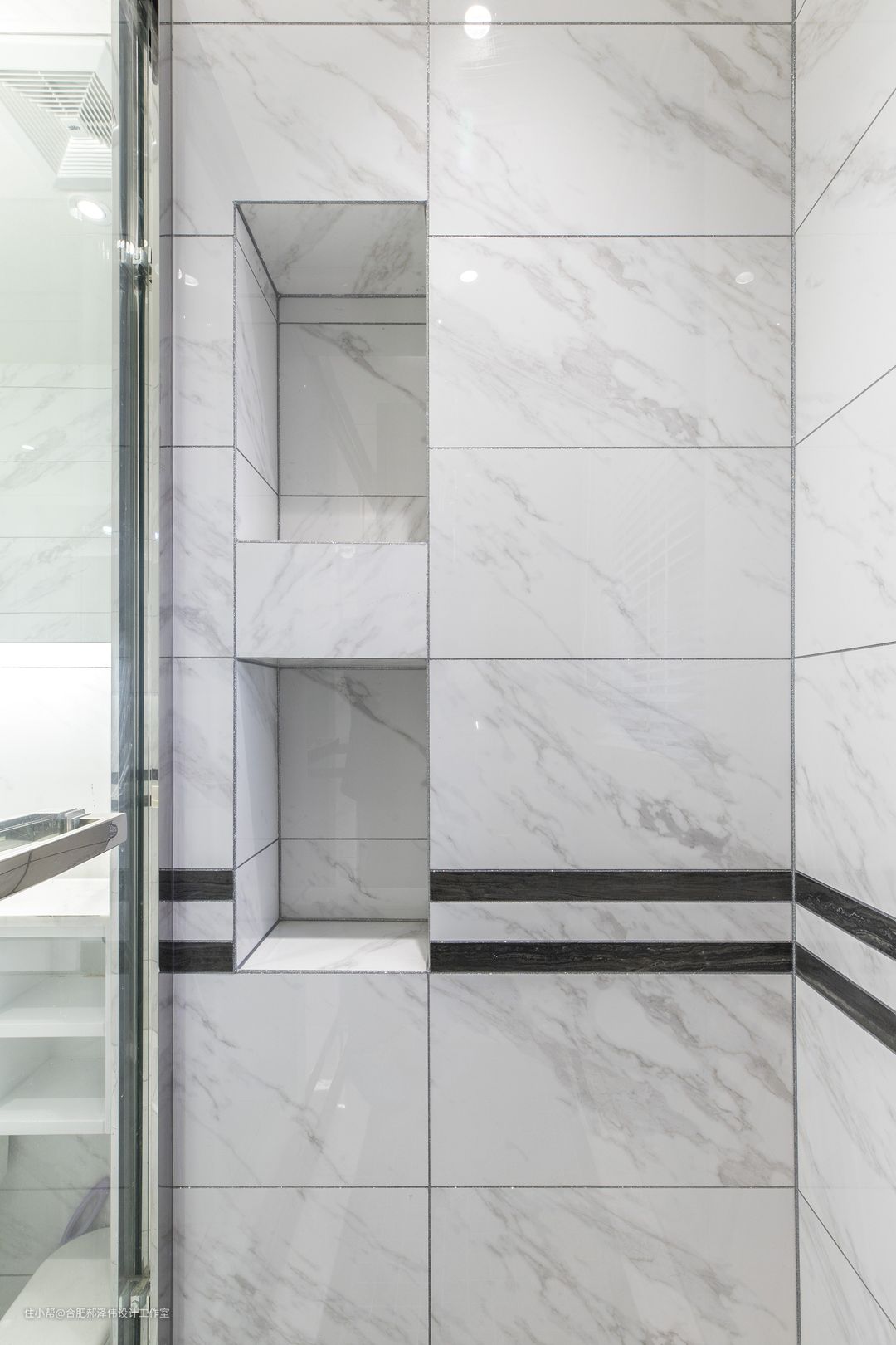淋浴房内部设计的壁龛,壁龛右边实体部分内部为落水管道。
