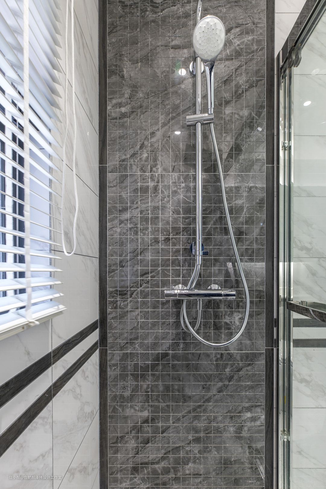 花洒改到了这里,墙面和地面一样做了拉槽处理。