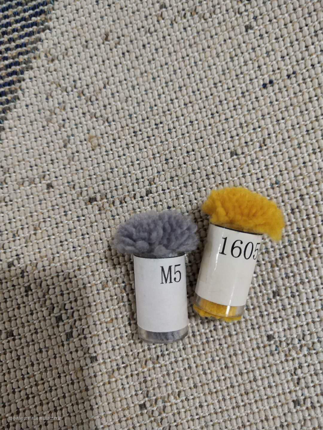 这是现场挑选的地毯颜色小块,其中背景色用的灰色(M5),线条用的黄色(1606),最终也是按照这个颜色定制的,可以从其他照片里看到地毯的最终效果,也很好的搭配了窗帘和家具。