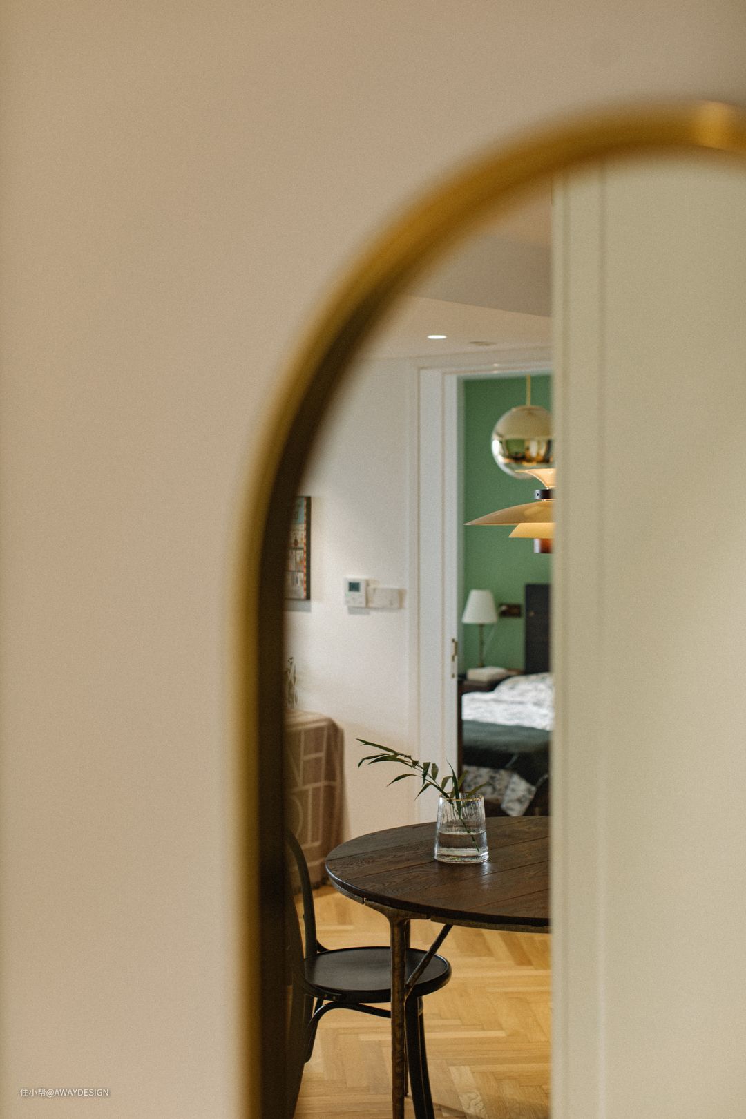 玄关的镜子,反射出餐厅和主卧,层层空间相互交叠。