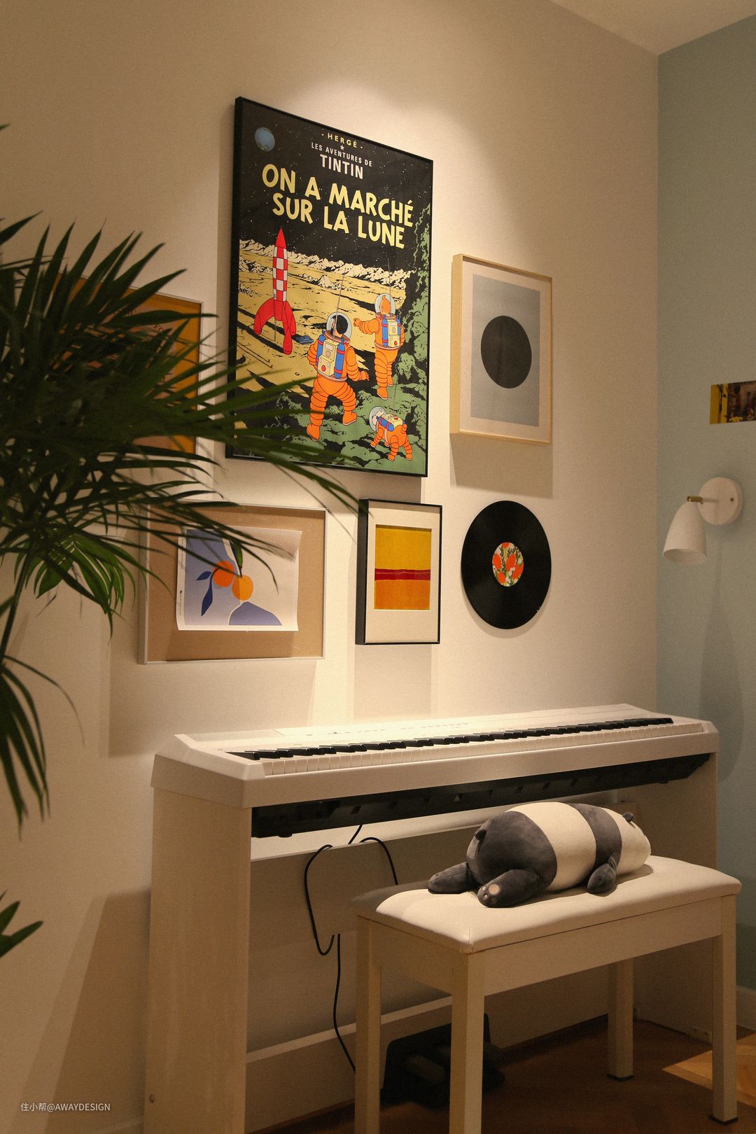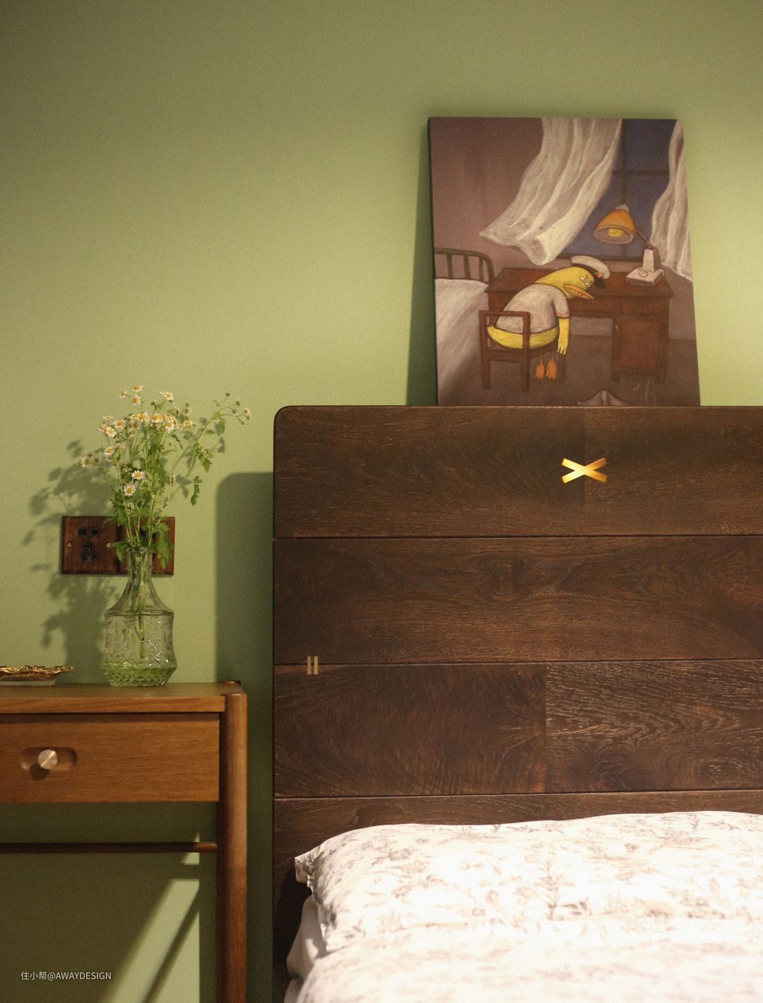 床头上方是业主收藏的新裤子乐队彭磊的签名画作。