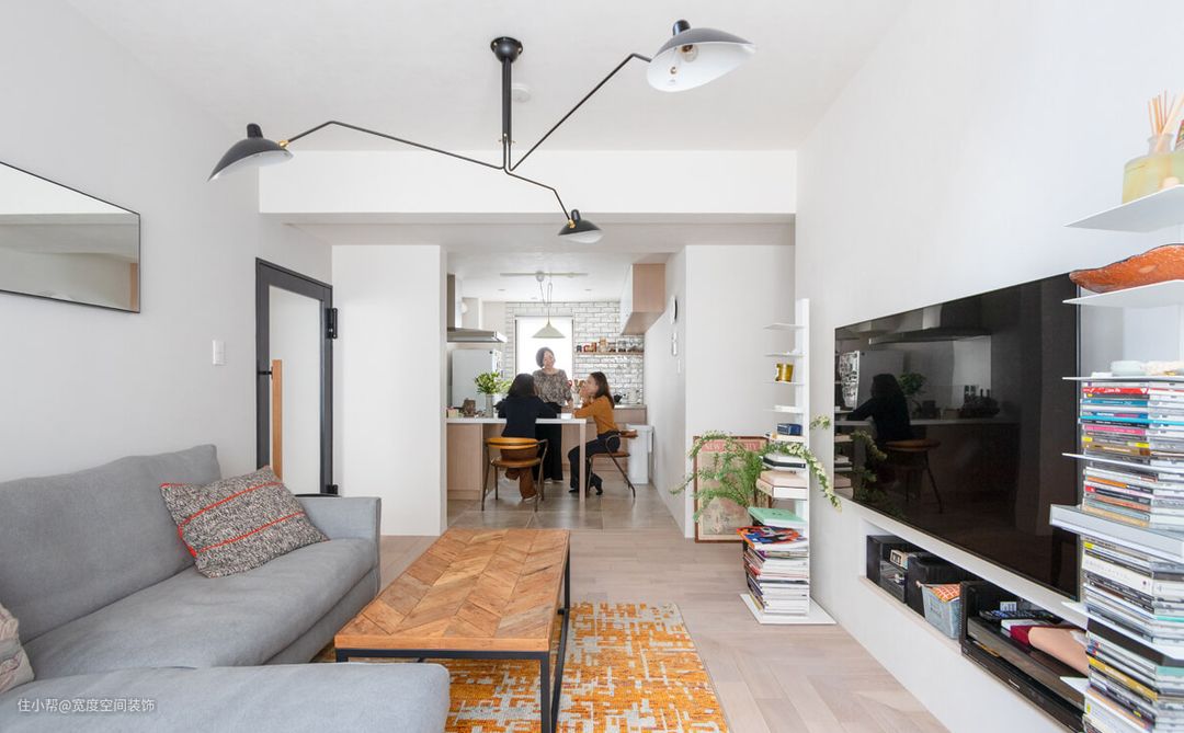 客厅作为两人主要的休闲区域,简洁的白墙赋予了空间更多的可能。