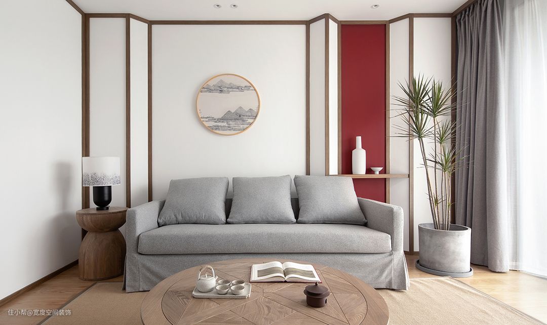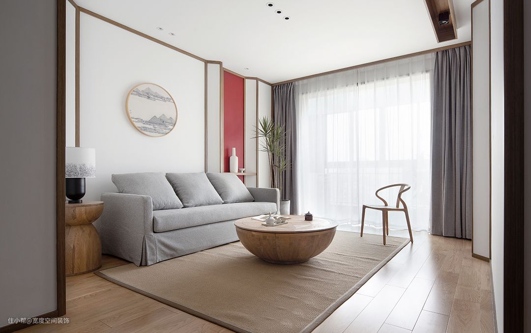 业主是一对年轻的夫妻,他们希望家是简单轻松的,有中式的氛围,但要求不俗套不套路化。一般理解的中式或东方风格往往会运用木屏风、字画、瓷器、纸灯、深色木制家具,偏厚重。结合业主年龄,以及房屋结构和面积,设计师选择了去明显符号,点到即可。任何风格都有元素符号的运用,我们应了解学习,才能更好的去运用或去回避。 对于业主的需求,设计师没有完全直白的使用中式元素,而是以贝聿铭大师设计的苏州博物馆为灵感,借鉴其建筑和内装设计手法,运用108根定制框线和大量留白,打造出克制且自由的中式空间,软装的甄选上也克制地选用部分中式元素,从色彩到造型都点到为止,尽量去装饰化,做到少即是多。