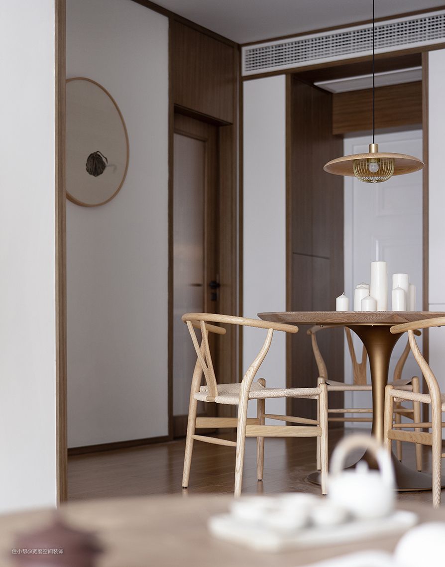 原木餐桌、藤编餐椅,闲适清淡,令人对每日三餐的美好盛筵新生向往。