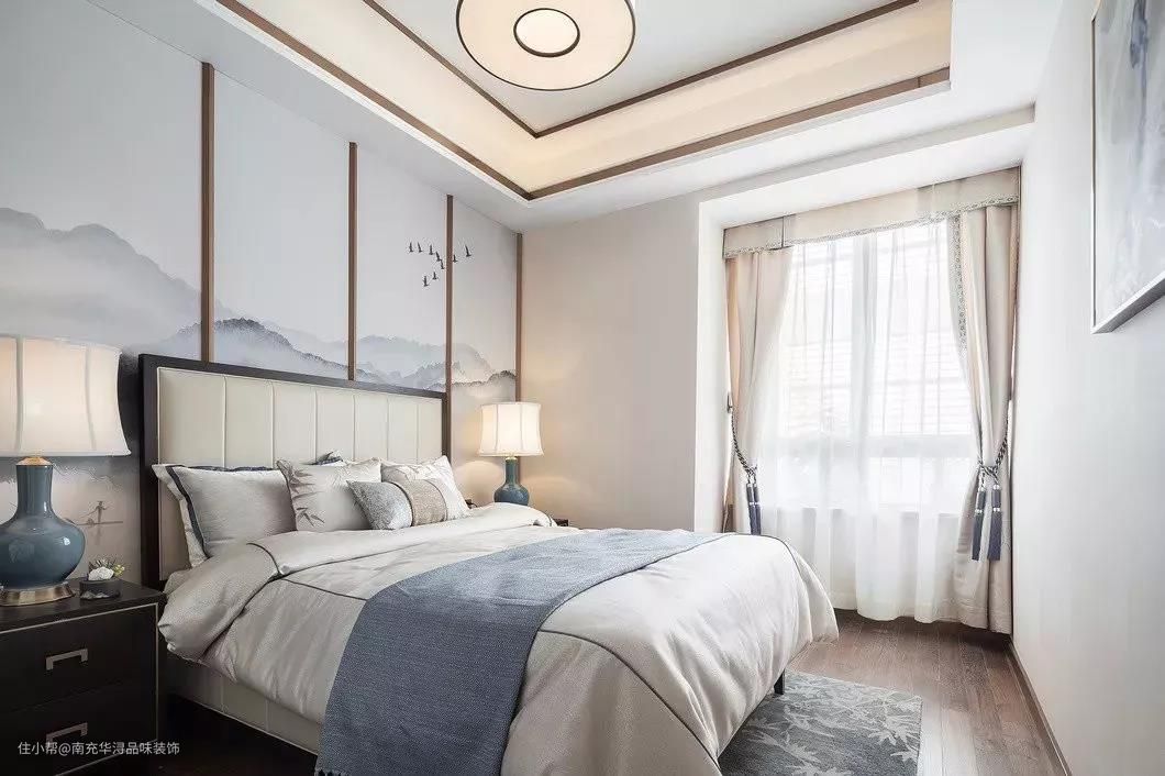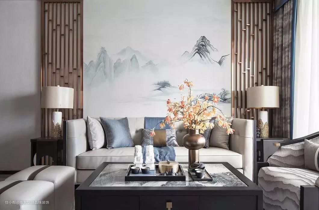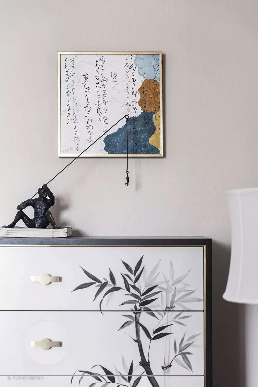 水墨画的背景,宁静而高雅,简洁的线条、清寂的装饰,材质与肌理的协调关系,让空间舒服而优雅。阳光散透过纱帘,变得细碎而温婉,营造出怡情养心的居室环境。