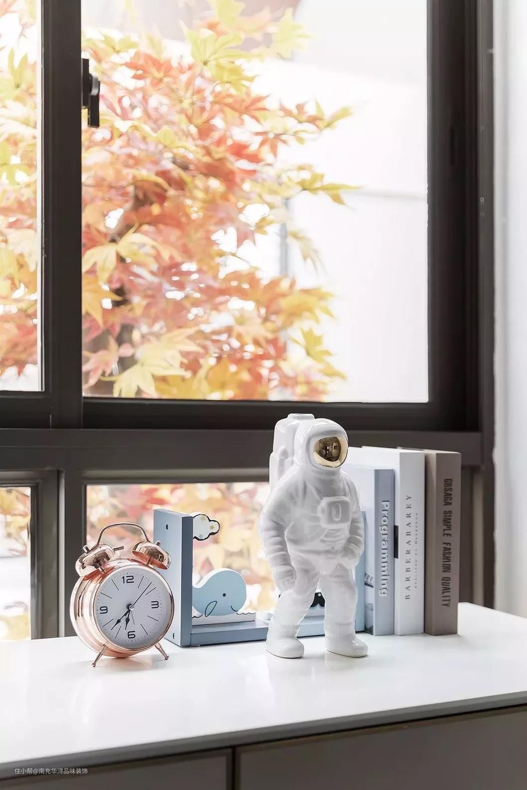 儿童房墙面,组合形式装饰画成为空间的视觉焦点,点缀简单明快色彩,不同饱和度不同明度的颜色与花纹相互交叉融合,活泼而不繁杂。