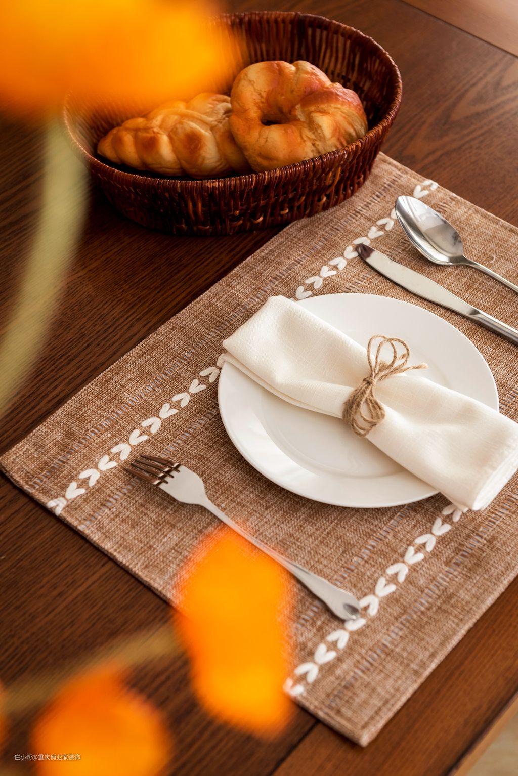餐厅区域的顶部造型呈栅栏设计,可以让人有视觉中心的同时,忽略层高不足带来的视觉压抑感,是设计师给的小惊喜。