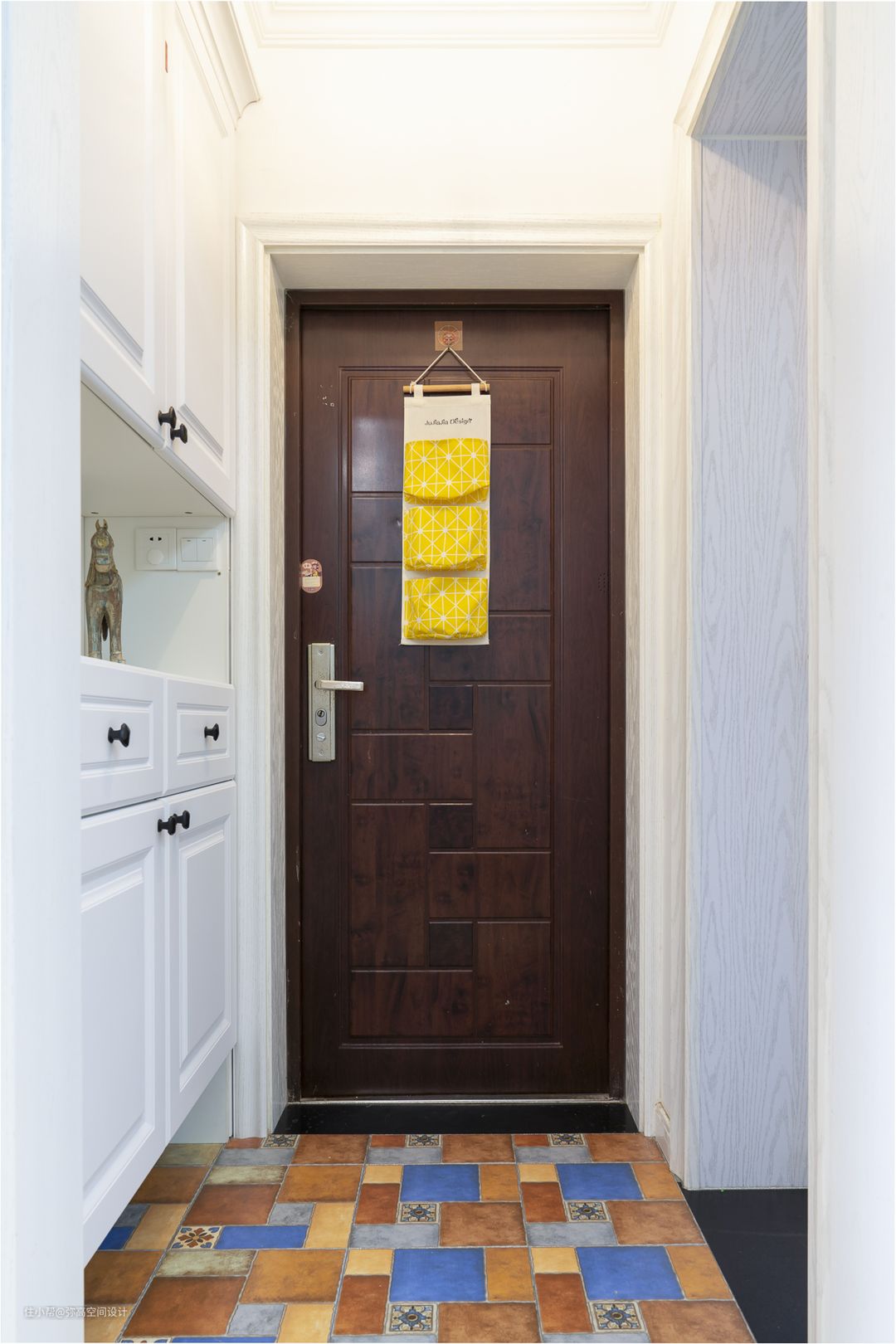 这个角度看玄关还挺大,其实也就一个平方左右,地面选了彩色小块仿古砖,有放大空间的效果。