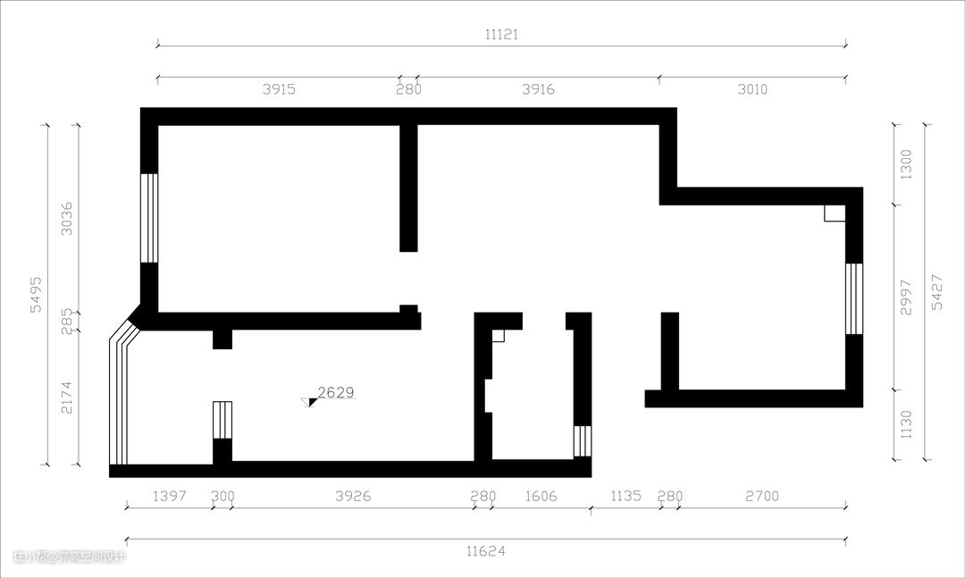 原始户型进门北边是厨房,中间客厅,南边两个房间,如果是只要两个房间,这个户型居住还是挺舒适的。