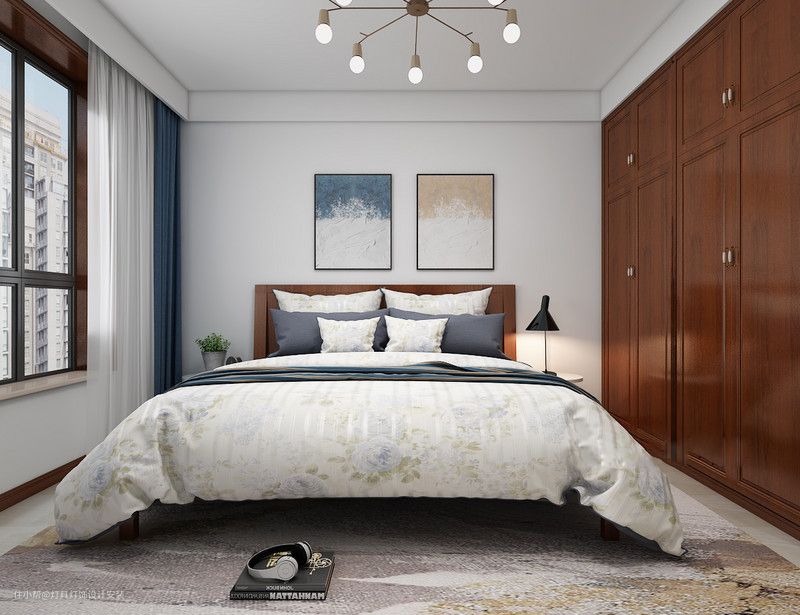 卧室的床头使用了 低调高贵的两幅画为背景 与主色形成对比 优雅却不沉闷