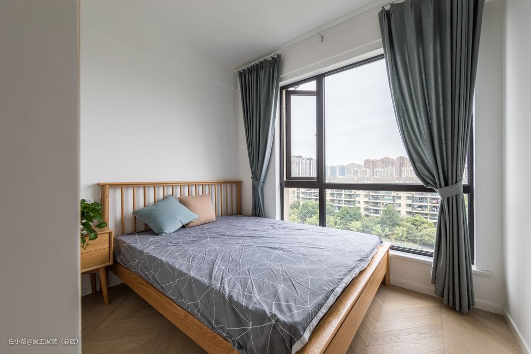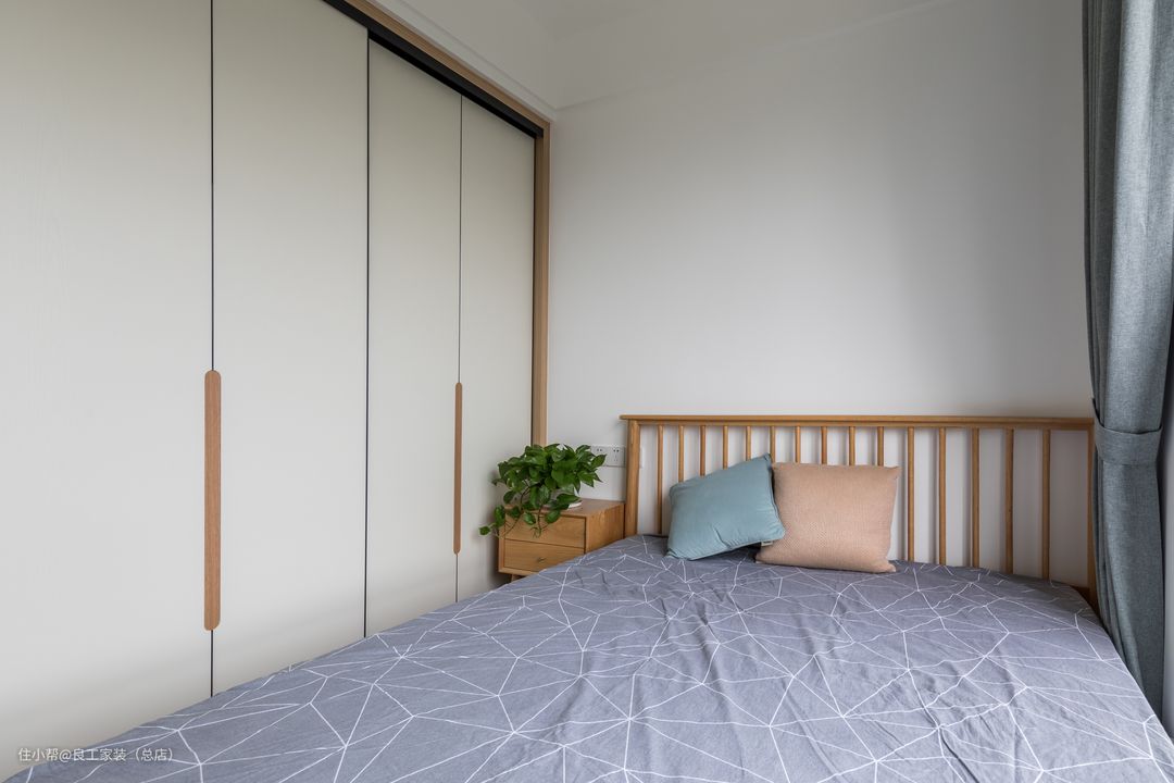 次卧整体显得轻柔休闲许多,木色与白色搭配清新温暖,让人感到放松舒心。