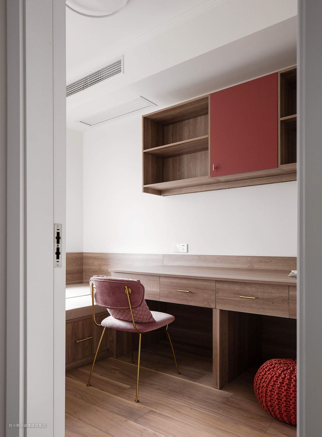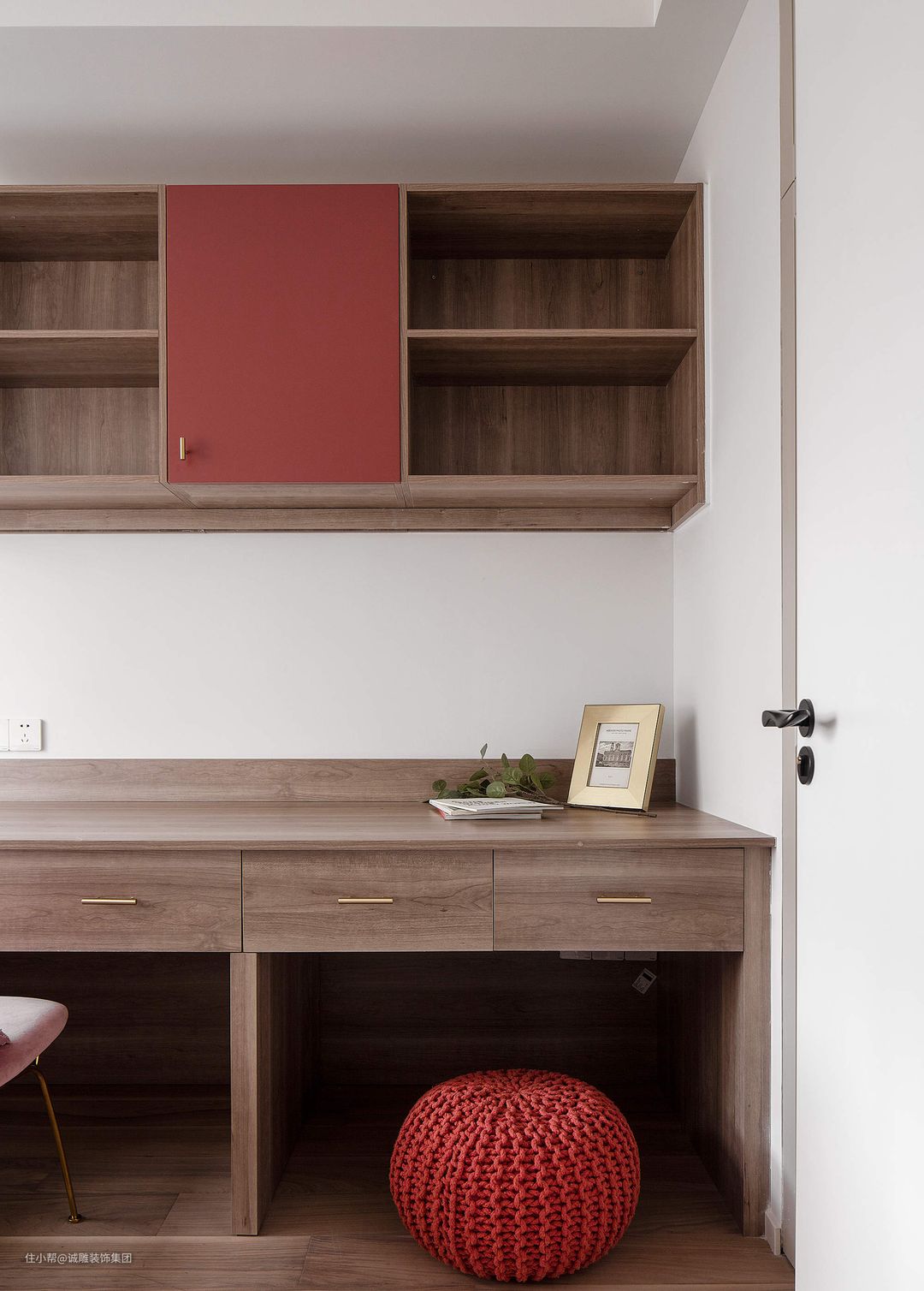 书房整体还是比较保守的, 软装上运用了“红蓝金”三色点缀。