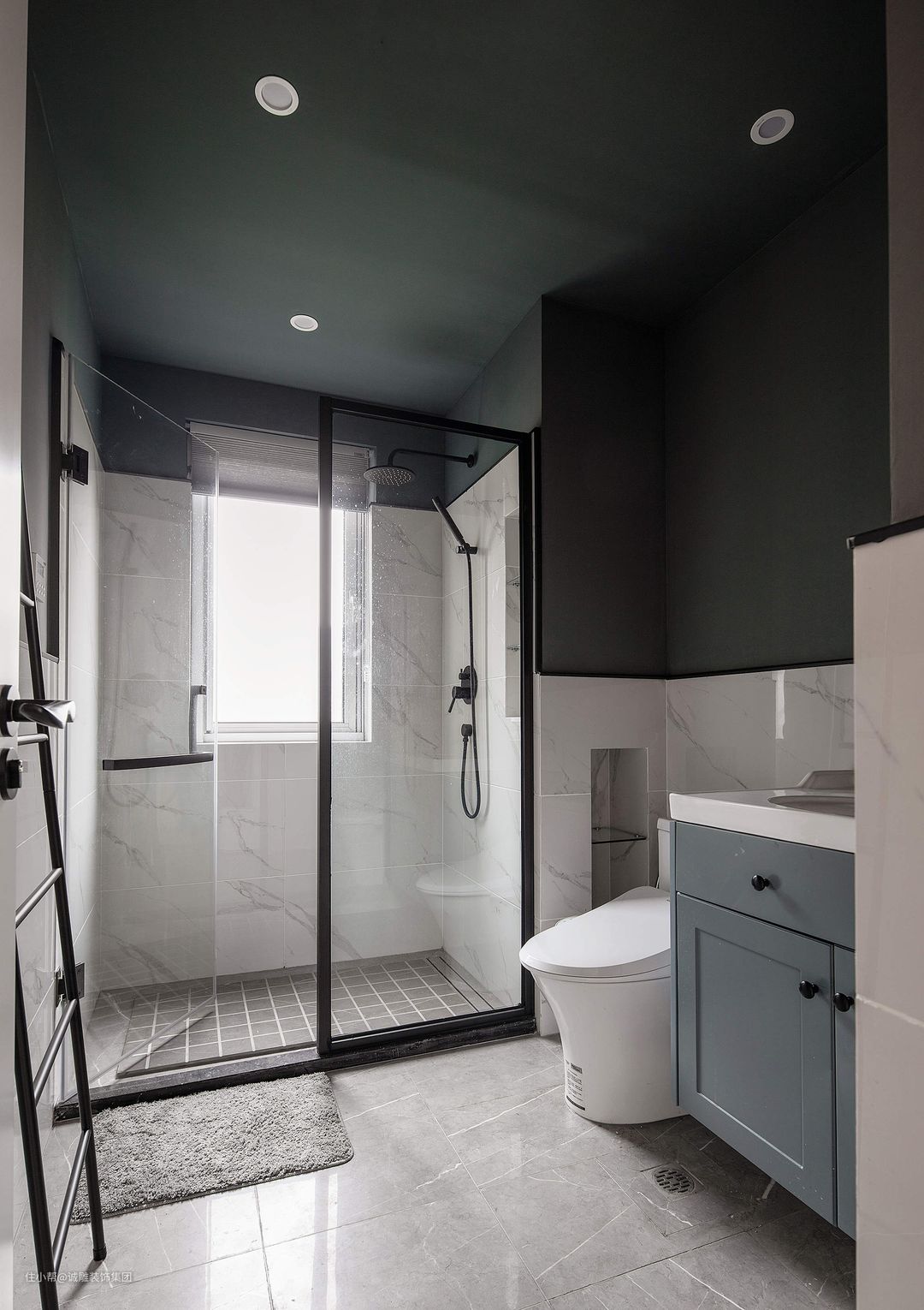 次卫整个空间色调以“蓝灰白”为主, 营造出的空间倍添时尚美感又极具品位。 同时也做了干湿分离,满足了客户的需求。