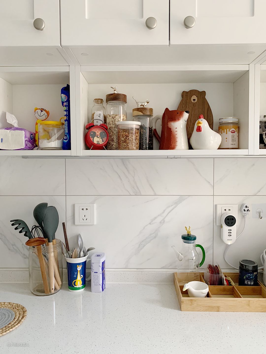 雯雯对家里每一个细节美追求到极致,厨房全白色调是她钟爱的清爽感,干净简洁又能平衡家里色彩感。 不得不说,整体厨房白色显得轻盈不少,白色吊柜地柜衔接自然与吊顶融为一体,视觉上更加显高,加上完美采光亮堂的让人羡慕。