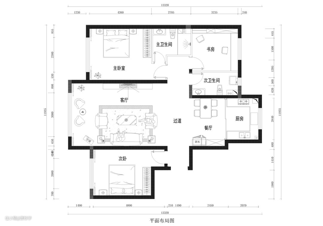 客户对自家的户型比较满意,空间尽可能宽敞,所以平面并无改动!只是在空间上做了区域划分。