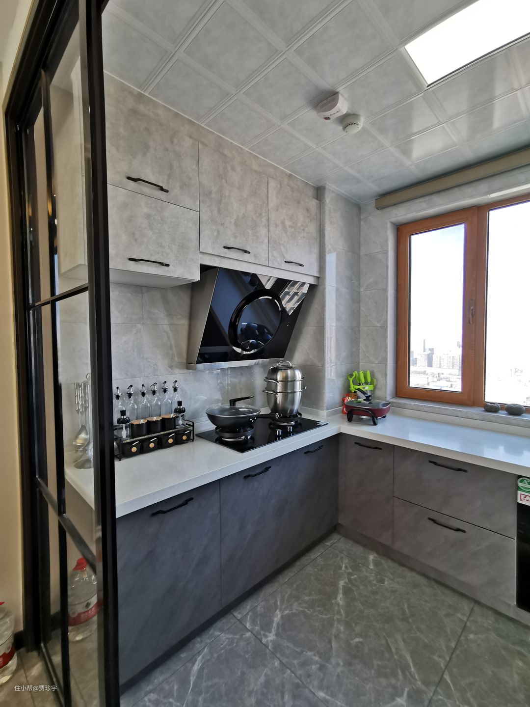 设计上的一些想法和理念:整体简约大气又不失温馨,结构通透合理,色彩层次分明,因楼层较高采光较好,可以用些重色调。 客户需求: ①2人居住。 ②长期定居需要空间布局合理,实用,色彩对比强烈。因工作较为忙碌,回家有一个放松的环境。 ③喜欢黑白灰色调,男主人喜欢玩游戏及爱好手办模型,所以书房有电脑桌及展示柜。
