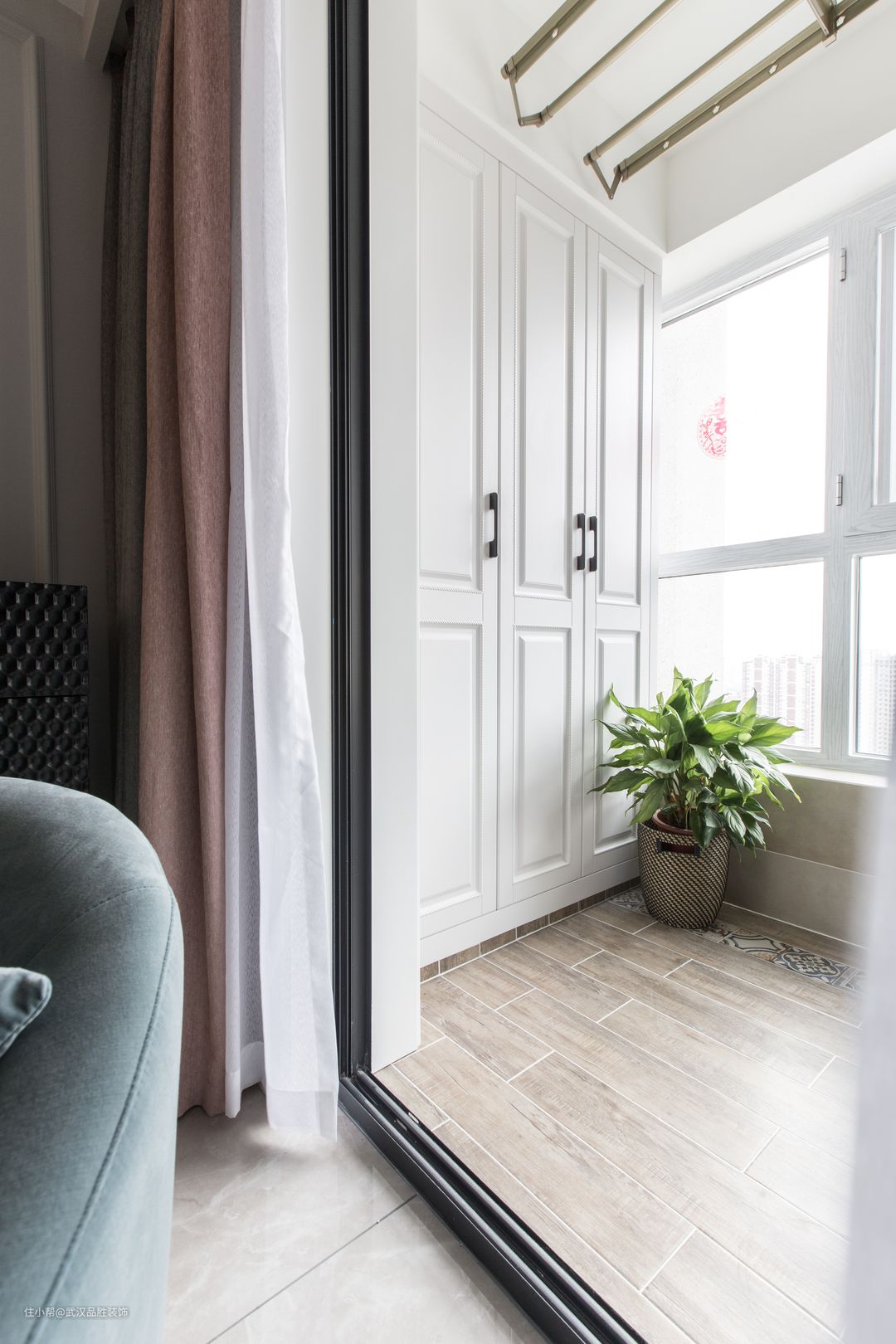 主卧和中间的衣帽间打通,将整个空间的封闭感打破,更是多出了一个二人世界的互动区。