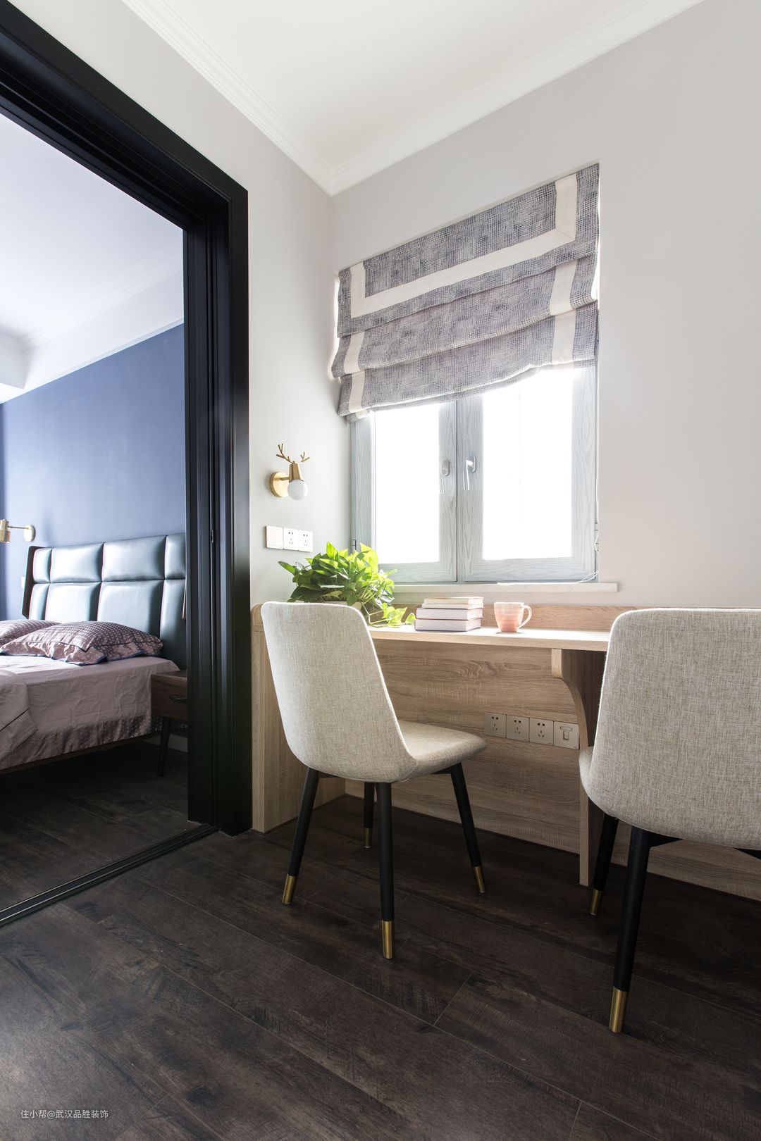小套间内特地选择了一个较长的书桌,二人世界也多出了另外的选择,打打游戏或者一起看书工作。
