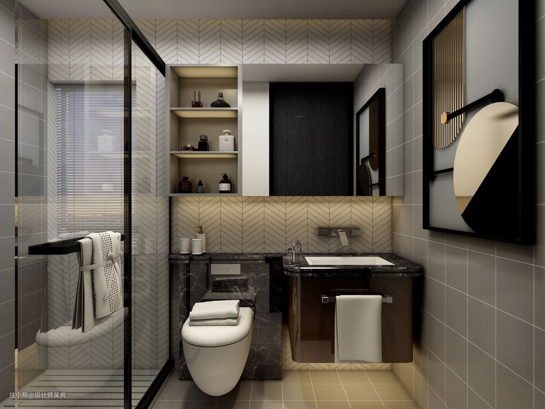 现代风格讲究简约大气,简约而至,冷色系墙面顶面柜体与灰色系相得益彰!